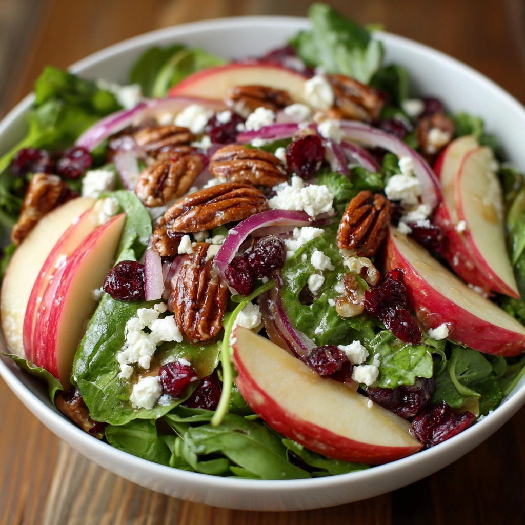 A fresh, crunchy salad combining sweet apples, tart cranberries, and nutty pecans in a light vinaigrette — perfect for lunch, dinner side, or a holiday table.
