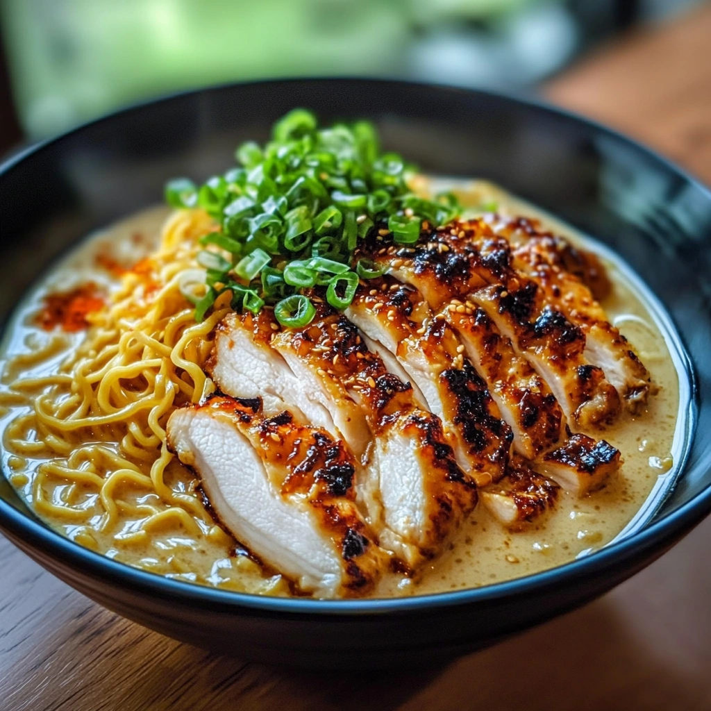 Fiery Chicken Ramen with Creamy Garlic Sauce