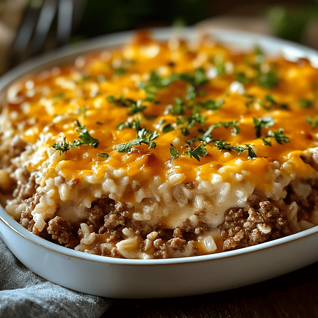 CHEDDAR-CRUSTED GROUND BEEF AND RICE CASSEROLE