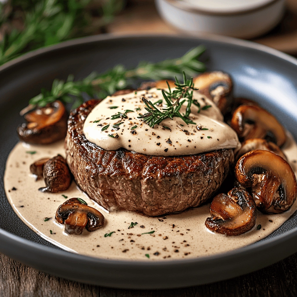 Delicious Filet Mignon with Rosemary Cream Sauce & Mushrooms Recipe