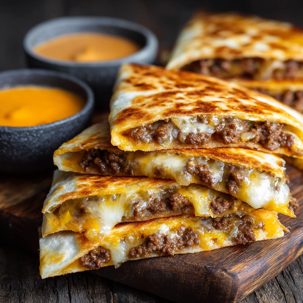 Cheeseburger Quesadillas combine the best of two comfort-food worlds: …