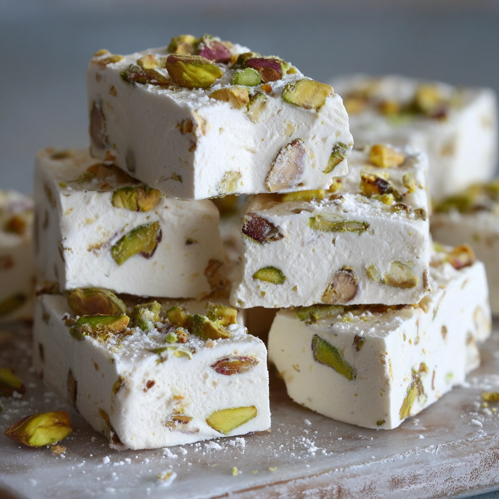 This homemade pistachio nougat is a soft, chewy candy …