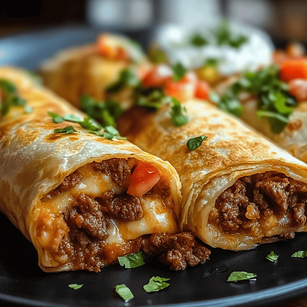 Serve warm with your favorite toppings such as sour cream or salsa for an extra kick! Enjoy these flavorful Beef and Cheese Chimichangas straight from the pan for maximum crunch.
