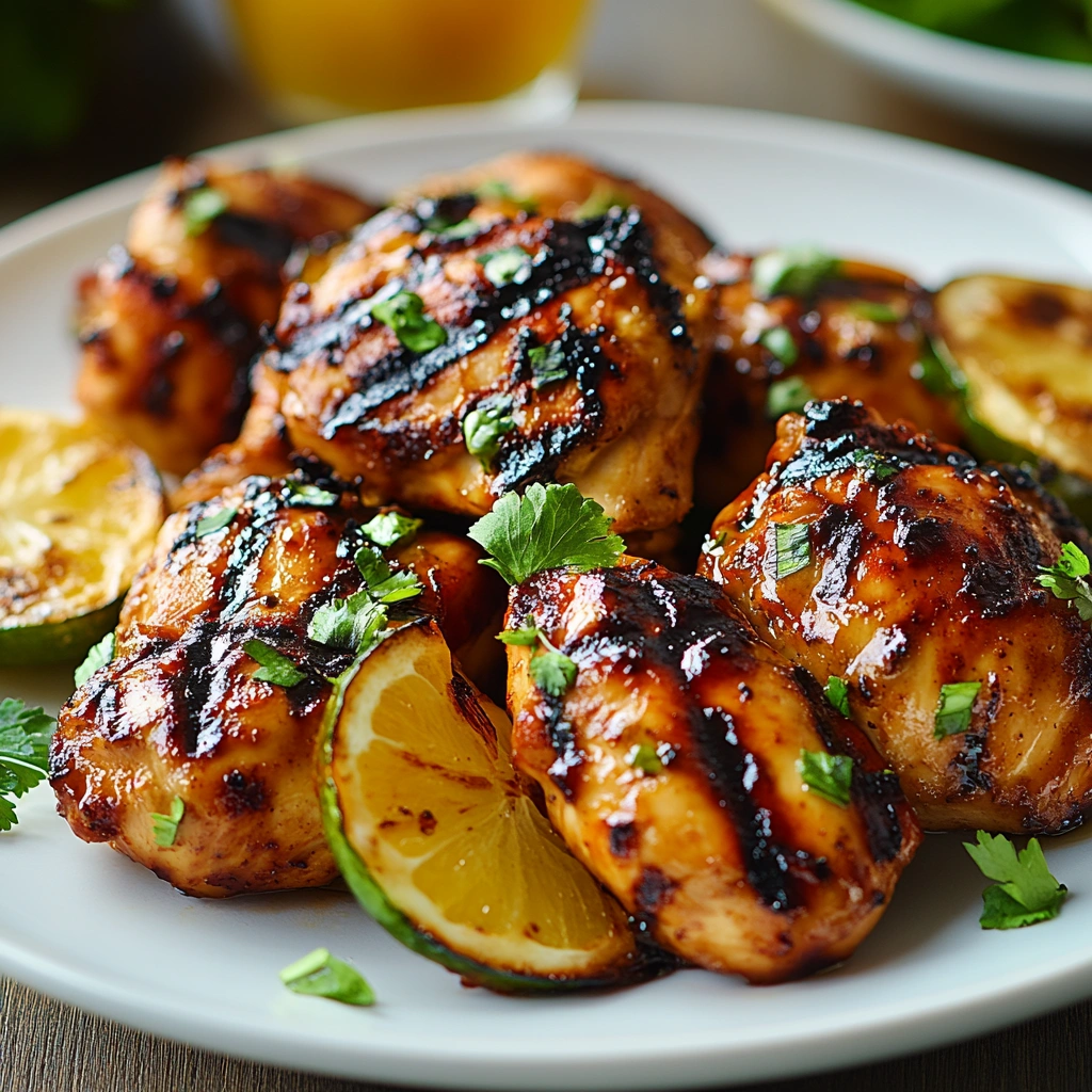During grilling (about halfway through), use leftover marinade—if reserved separately—to baste each piece while they cook on one side. This technique enhances flavor without losing moisture from each thigh as it grills.
