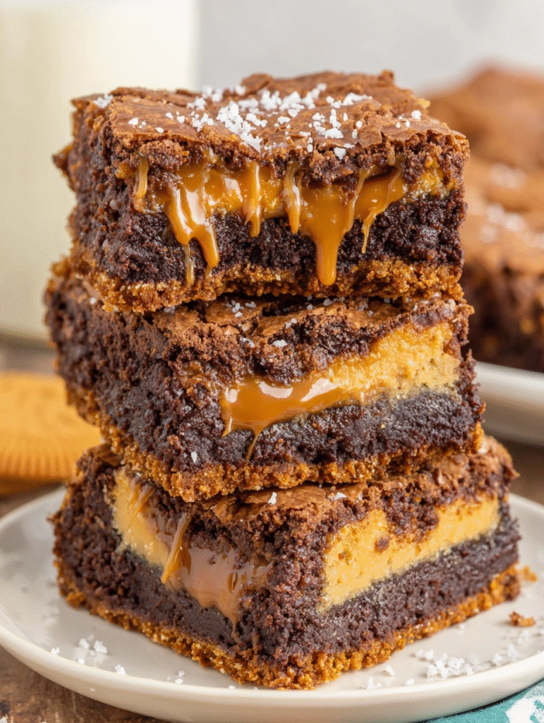 A decadent mashup dessert with a crunchy Biscoff cookie crust, rich fudgy brownies, and swirls of creamy cookie butter on top. Every bite is a perfect balance of chewy, crunchy, and gooey indulgence.