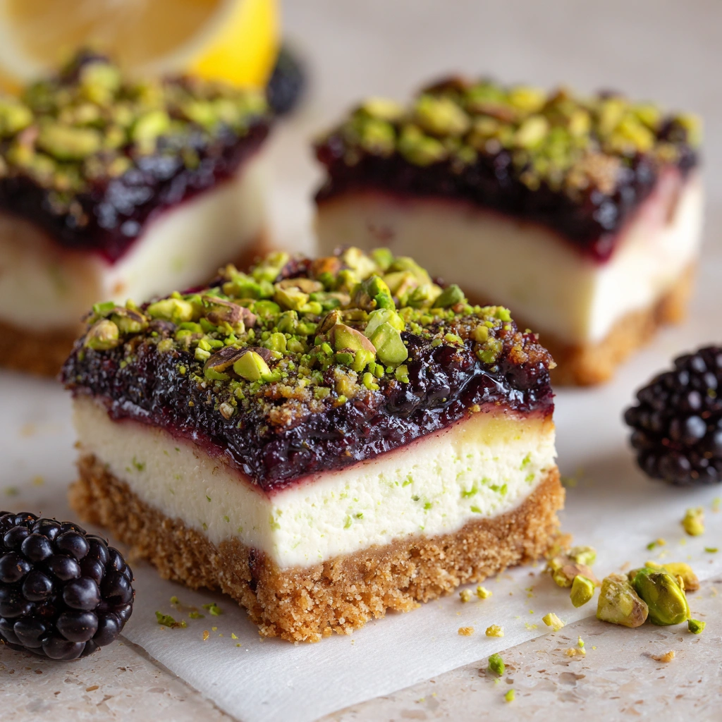 These Blackberry Pistachio Dream Bars are a beautifully layered dessert marrying a buttery crust, nutty pistachio richness, creamy filling, and a bright, fruity blackberry topping. They’re perfect for parties, dessert platters, or just a special treat at home — elegant, flavorful, and surprisingly easy to make.