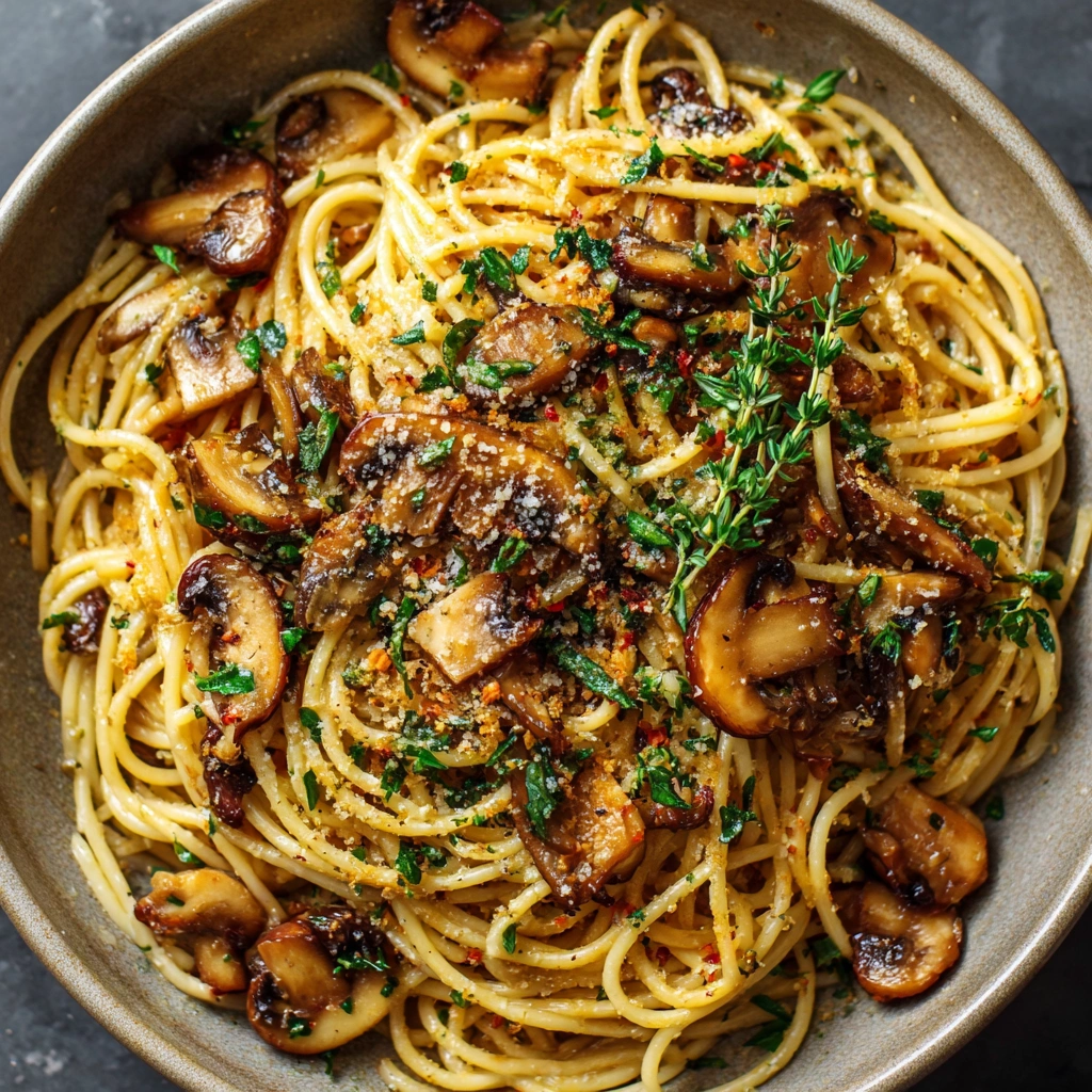 This pasta is all about nutty brown butter, sautéed mushrooms, garlic, and crisp toasted breadcrumbs — comforting, quick, and full of flavor.