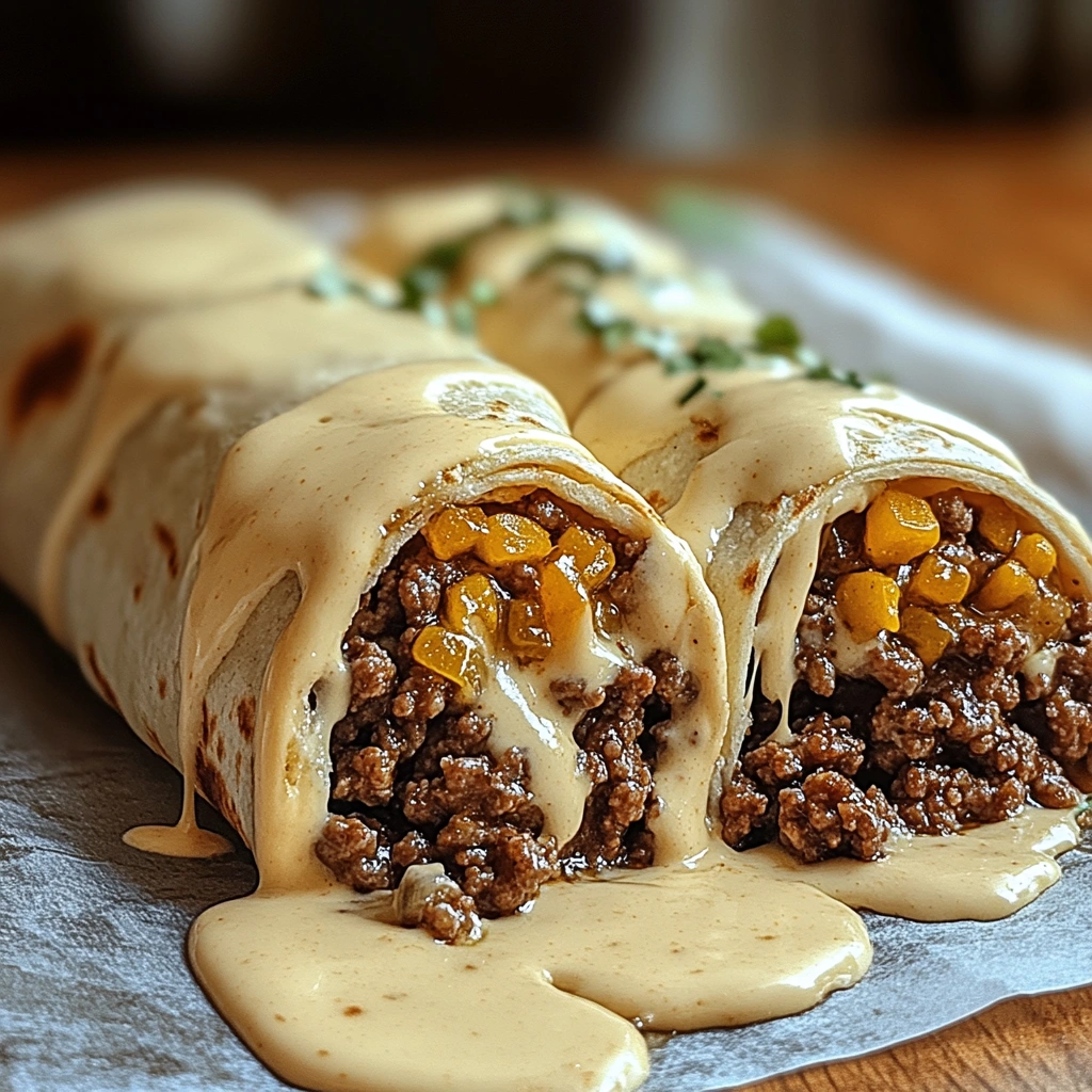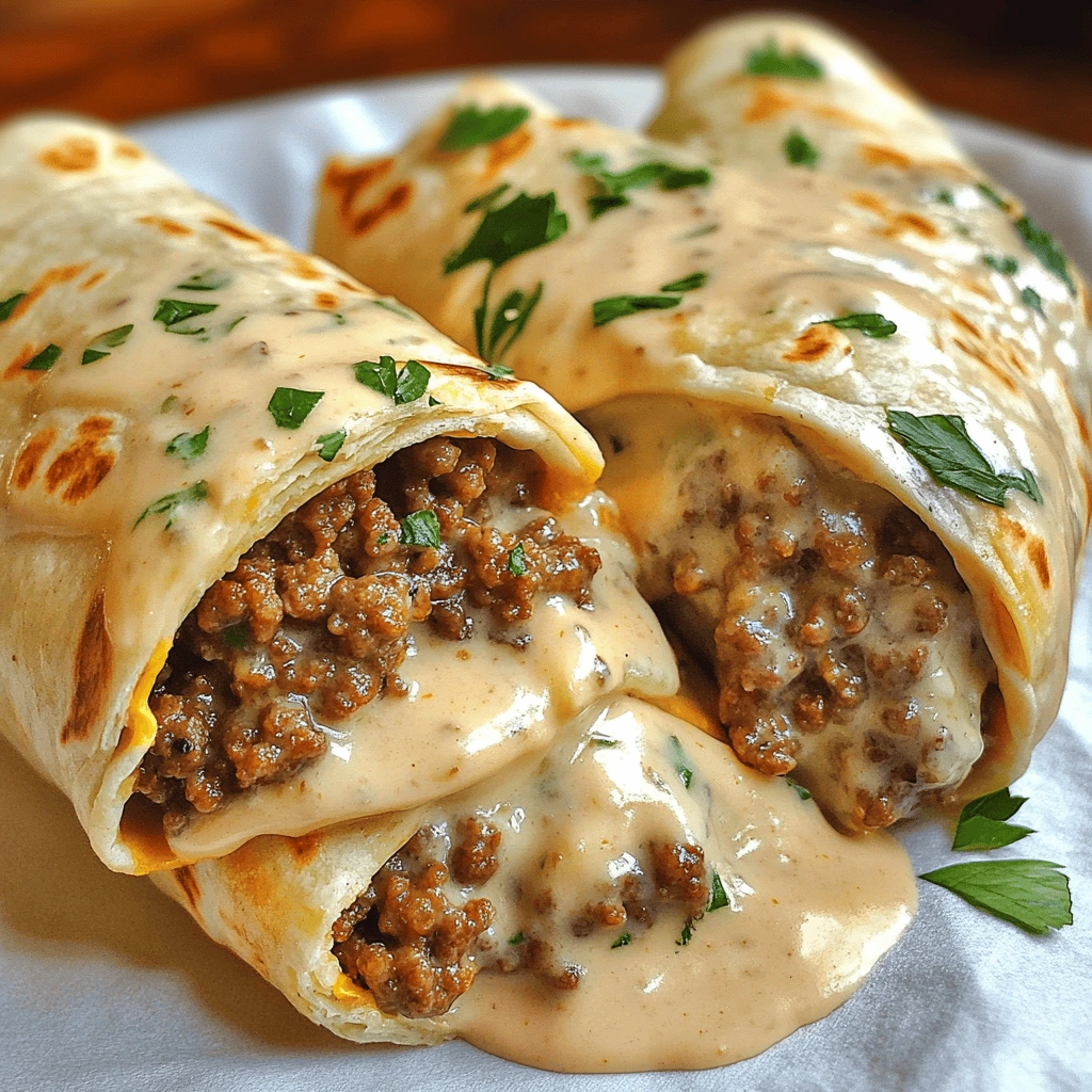 Cheesy Ground Beef Delight Wrap with Creamy Sauce