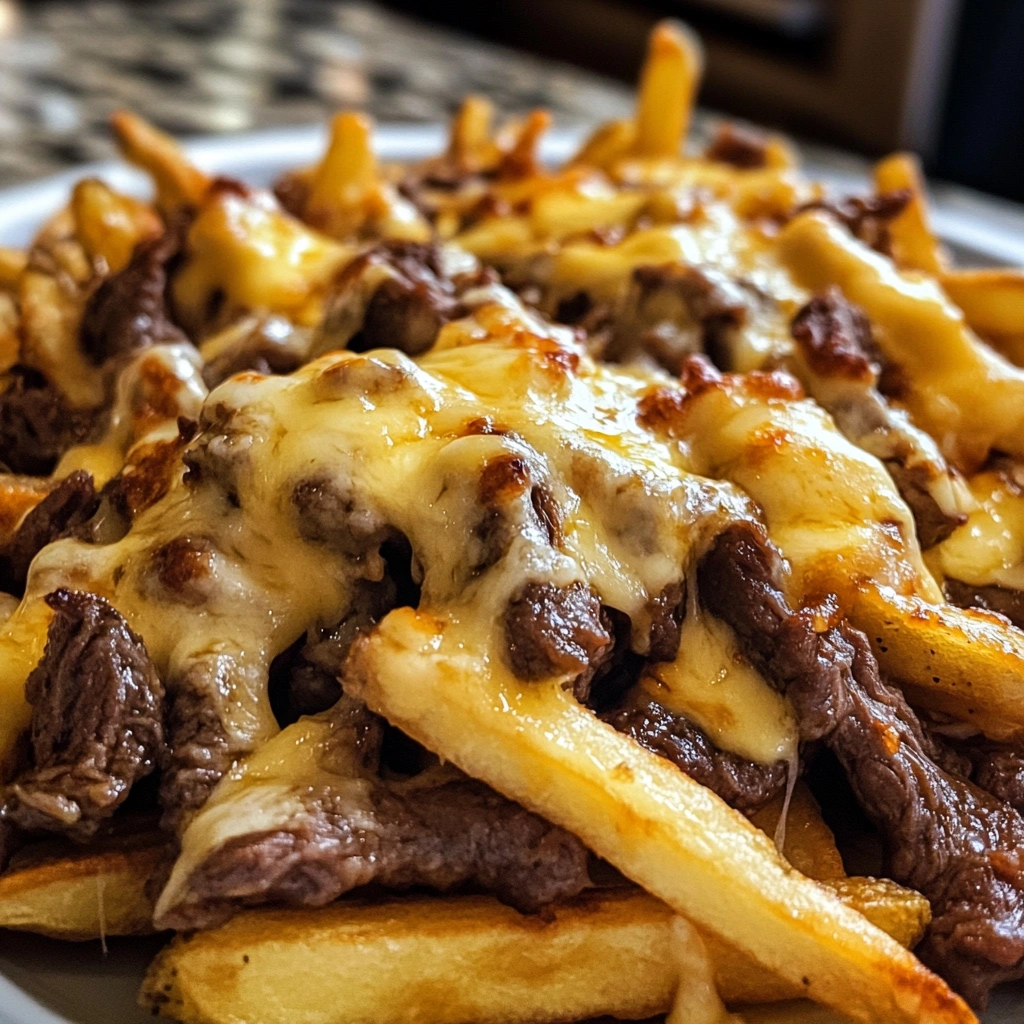 Enjoy these cheesy loaded beef fries as a delightful treat that everyone loves!