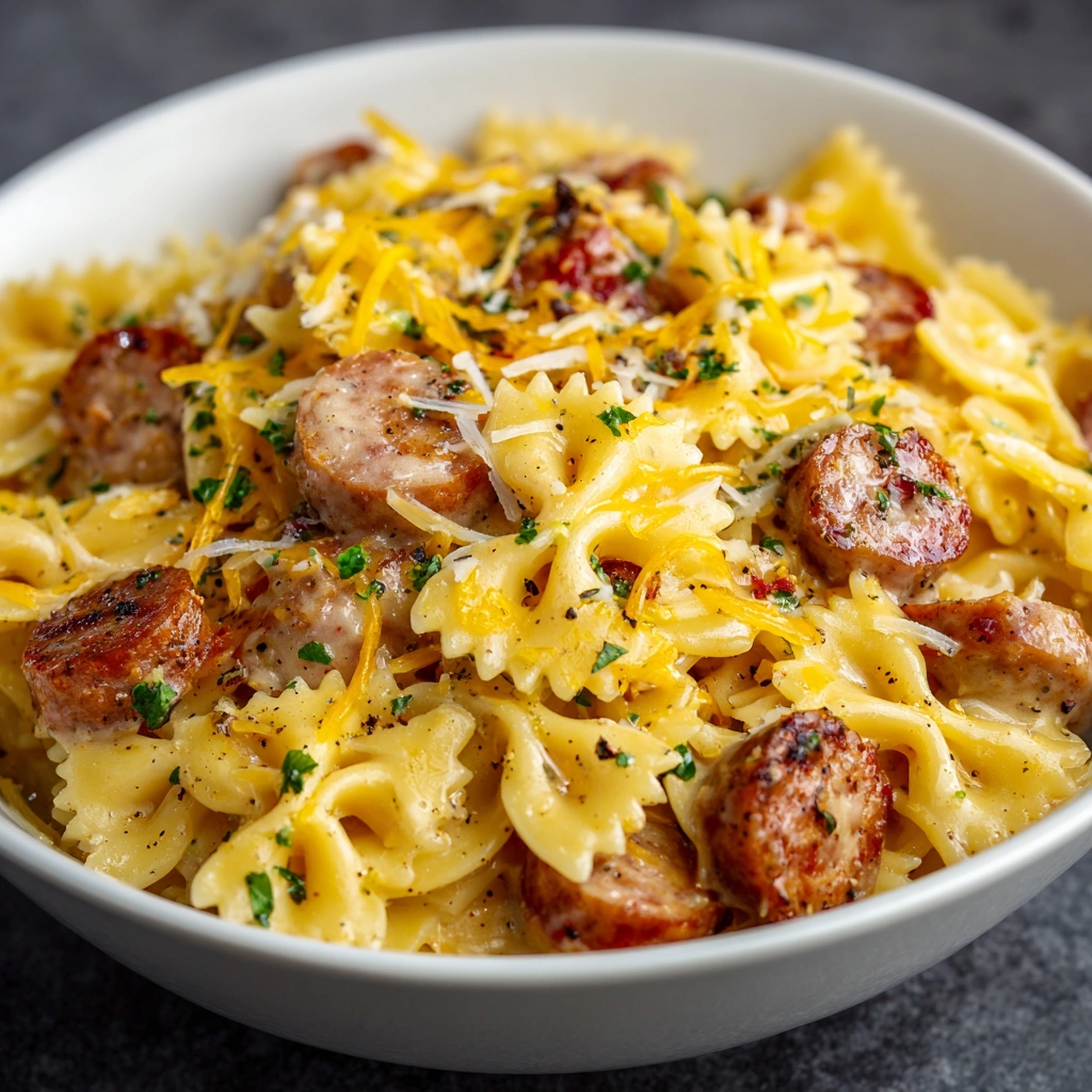 A creamy, cheesy, ultra-comforting pasta dish packed with smoky sausage, tender bowtie noodles, and a rich, velvety sauce. Perfect for busy weeknights!