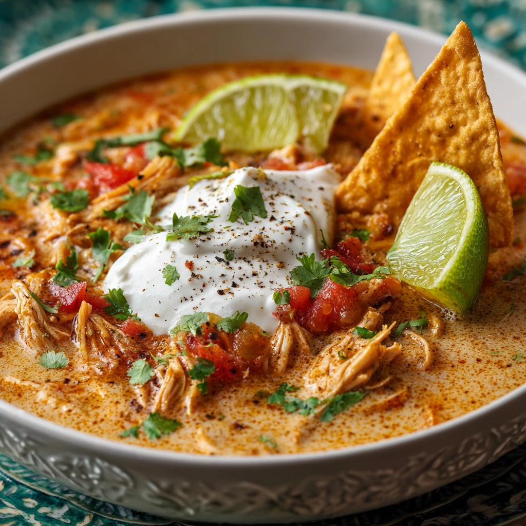 - Balance of tender chicken, savory broth, and crunchy tortilla topping