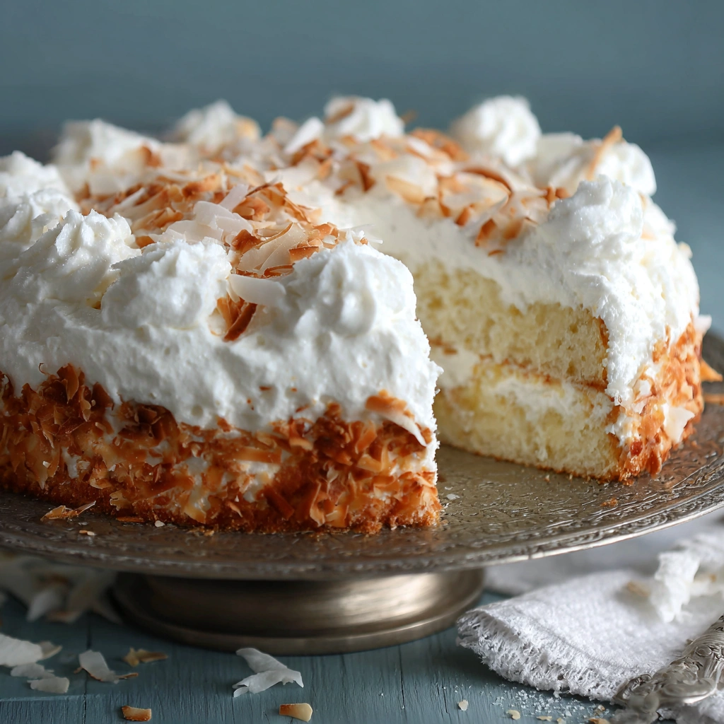 A light, airy cake layered with coconut flavor and creamy frosting — soft and fluffy, with a tropical twist that makes it feel special yet comforting.