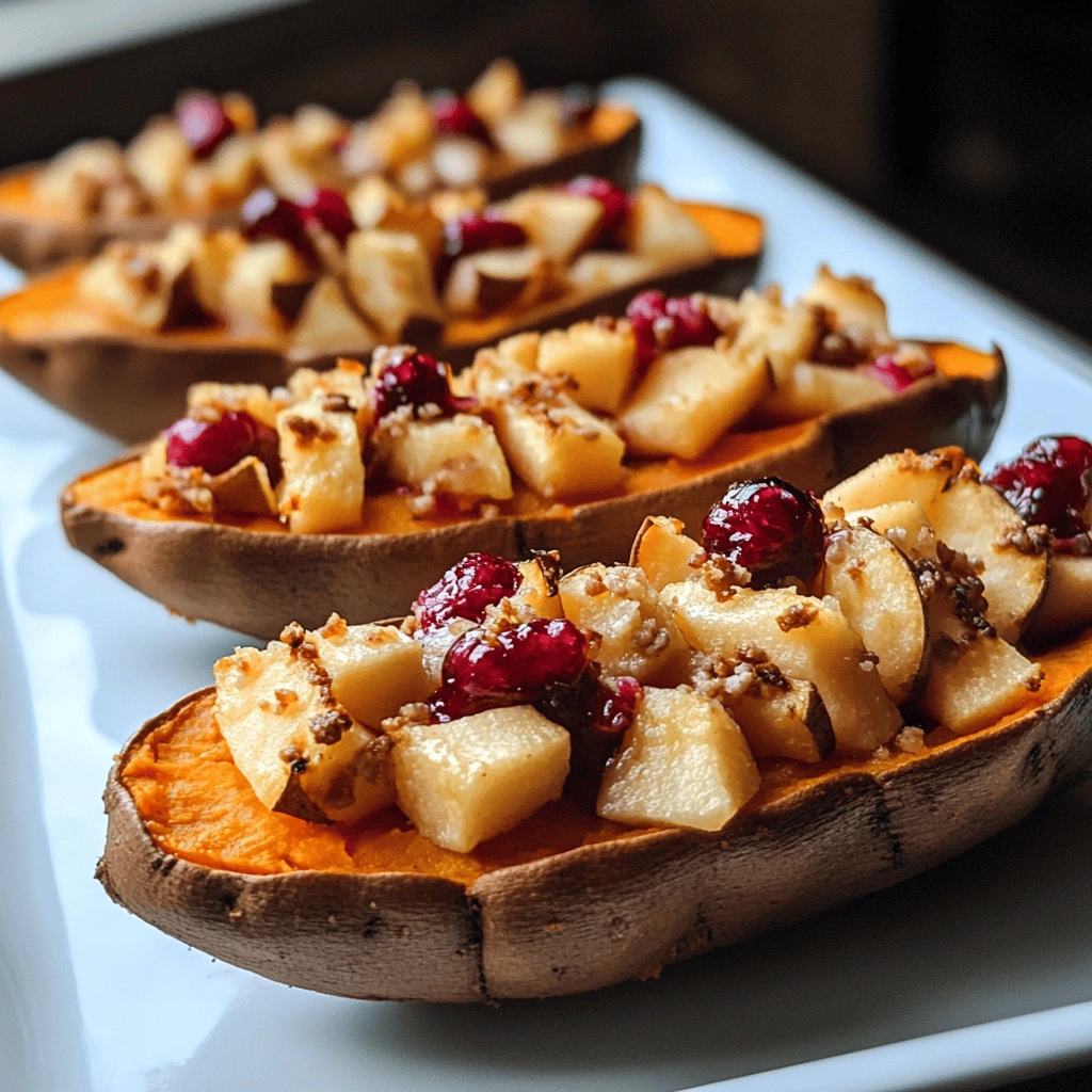 Don’t forget about presentation! Once you’ve filled your sweet potatoes with the cranberry-apple mixture, think about garnishing with fresh herbs like parsley or chives for color and freshness. Additionally, a light drizzle of balsamic glaze can add an elegant touch that complements the sweetness of the dish beautifully.
