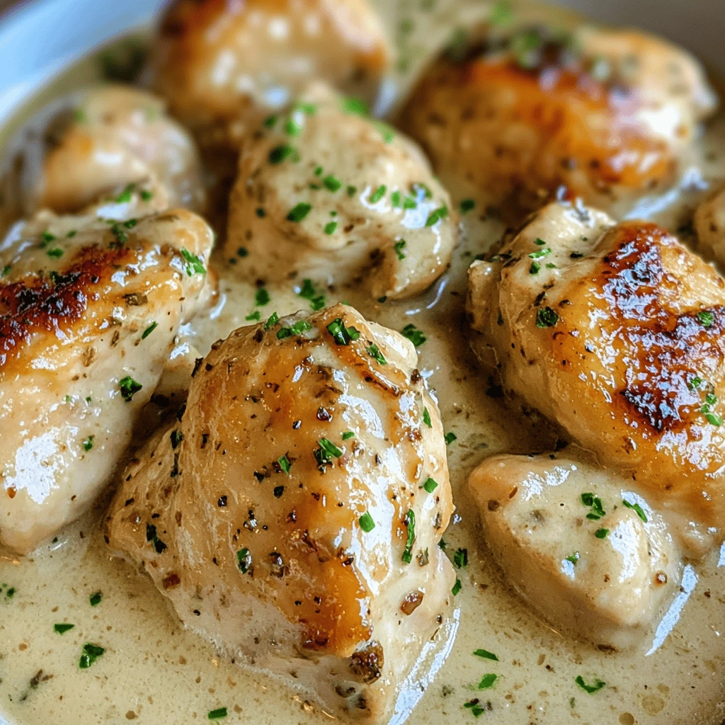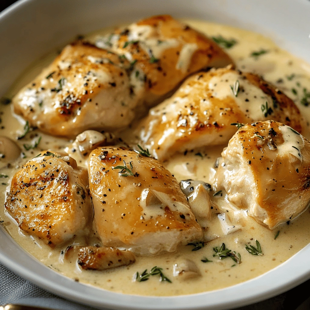 Enjoy this delightful creamy garlic chicken recipe at home—it’s simple yet bursting with flavor!
