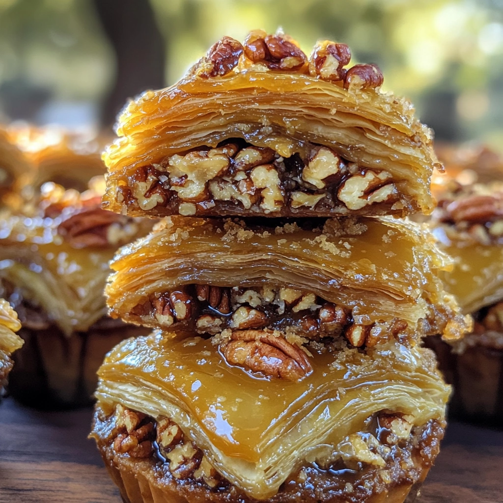 Crispy Caramel Pecan Baklava Cups are a remarkable twist on traditional baklava. These delightful treats combine flaky pastry with a rich caramel and pecan filling, creating a mouthwatering snack that is perfect for gatherings or personal indulgence. The crunchy texture of the phyllo dough pairs beautifully with the sweet and nutty flavors, making each bite a heavenly experience.