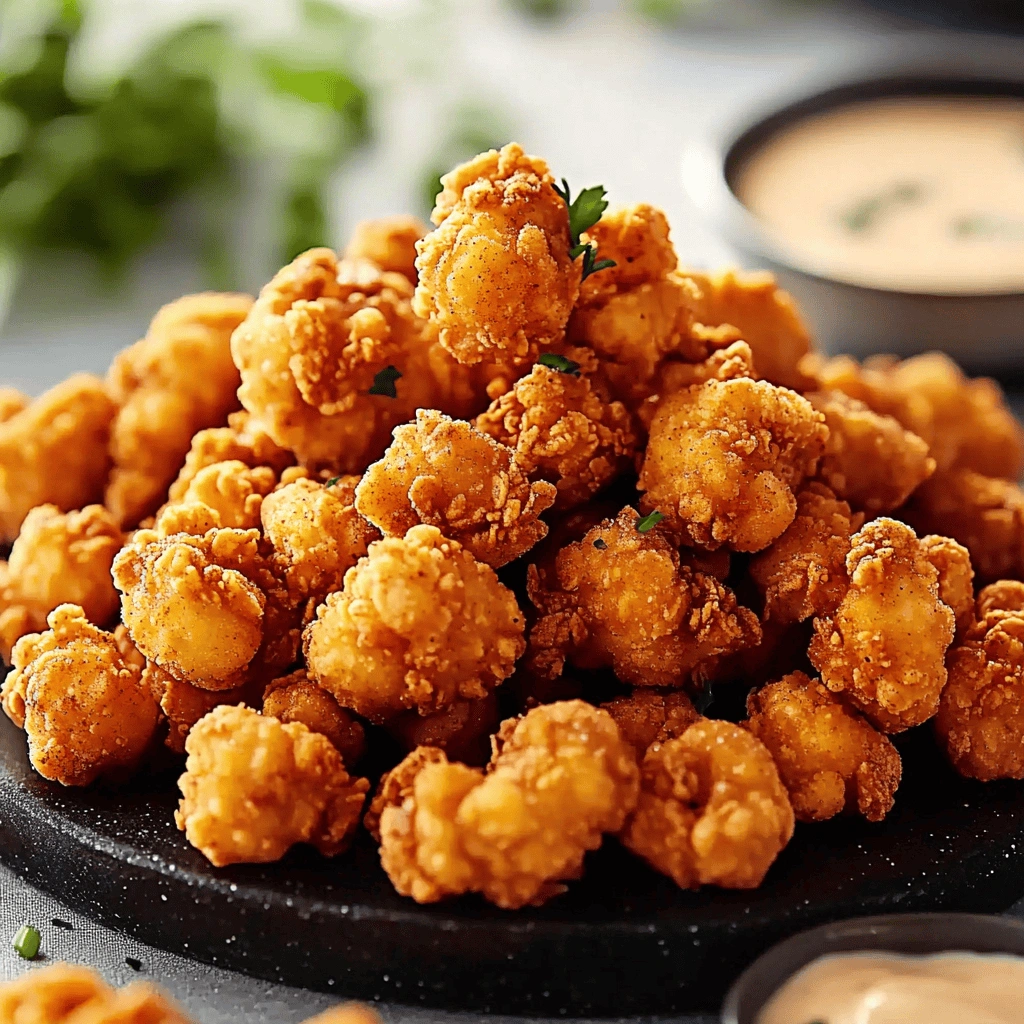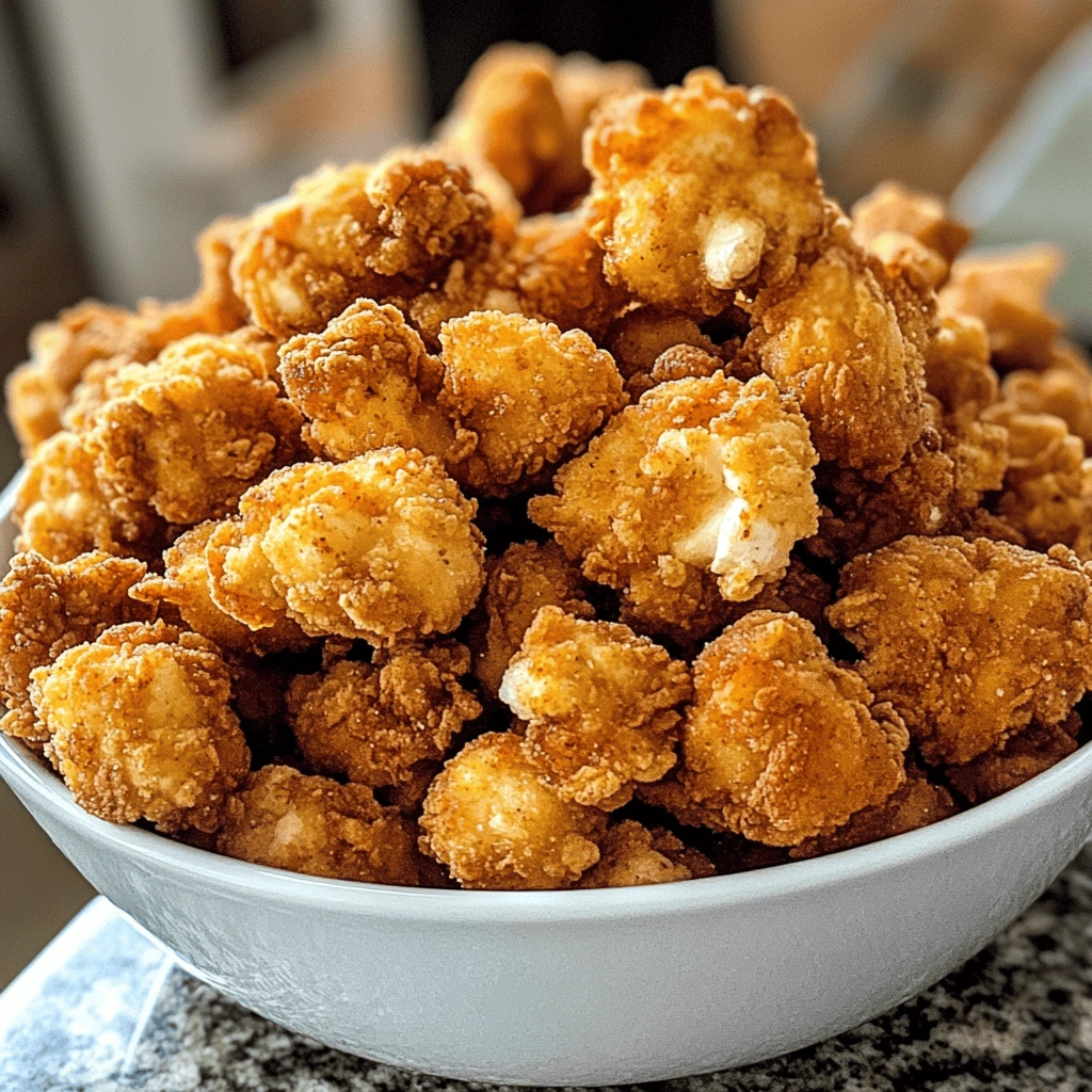 After frying, allow your popcorn chicken to rest on a wire rack instead of paper towels. This prevents steam from accumulating underneath, which can make your chicken soggy. Serve immediately for maximum crispiness.