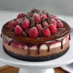 If you love the richness of dark chocolate and the bright tartness of raspberries, this Dark Chocolate Raspberry Cheesecake brings them together beautifully. A crisp chocolate cookie crust supports a smooth, creamy dark-chocolate cheesecake filling, swirled with fresh raspberries (or a raspberry coulis) and topped with a glossy ganache and fresh berries. Elegant, flavour-packed and perfect for celebrations or indulgent dessert time.