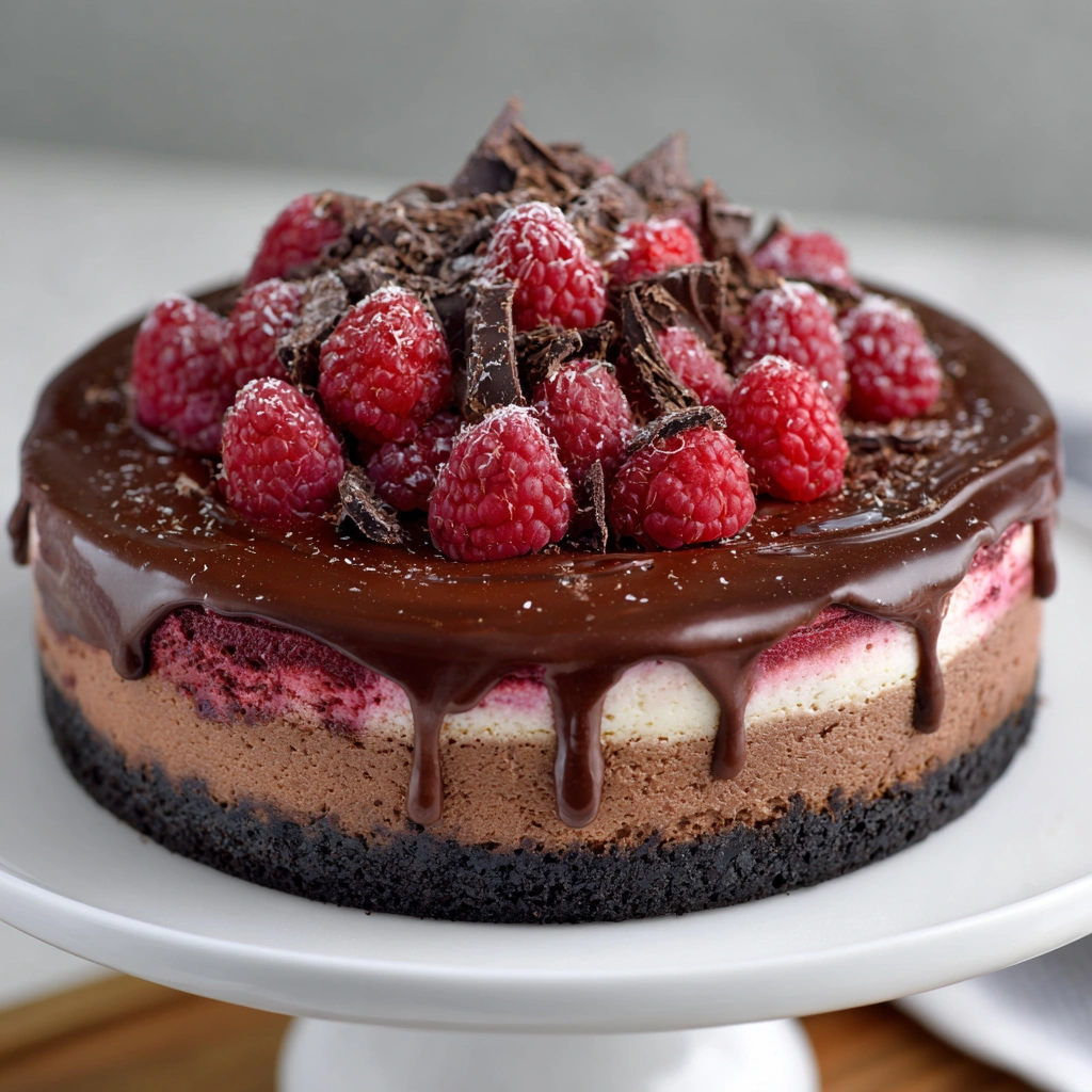 - Keywords: dark chocolate raspberry cheesecake, chocolate raspberry dessert, cheesecake with raspberries