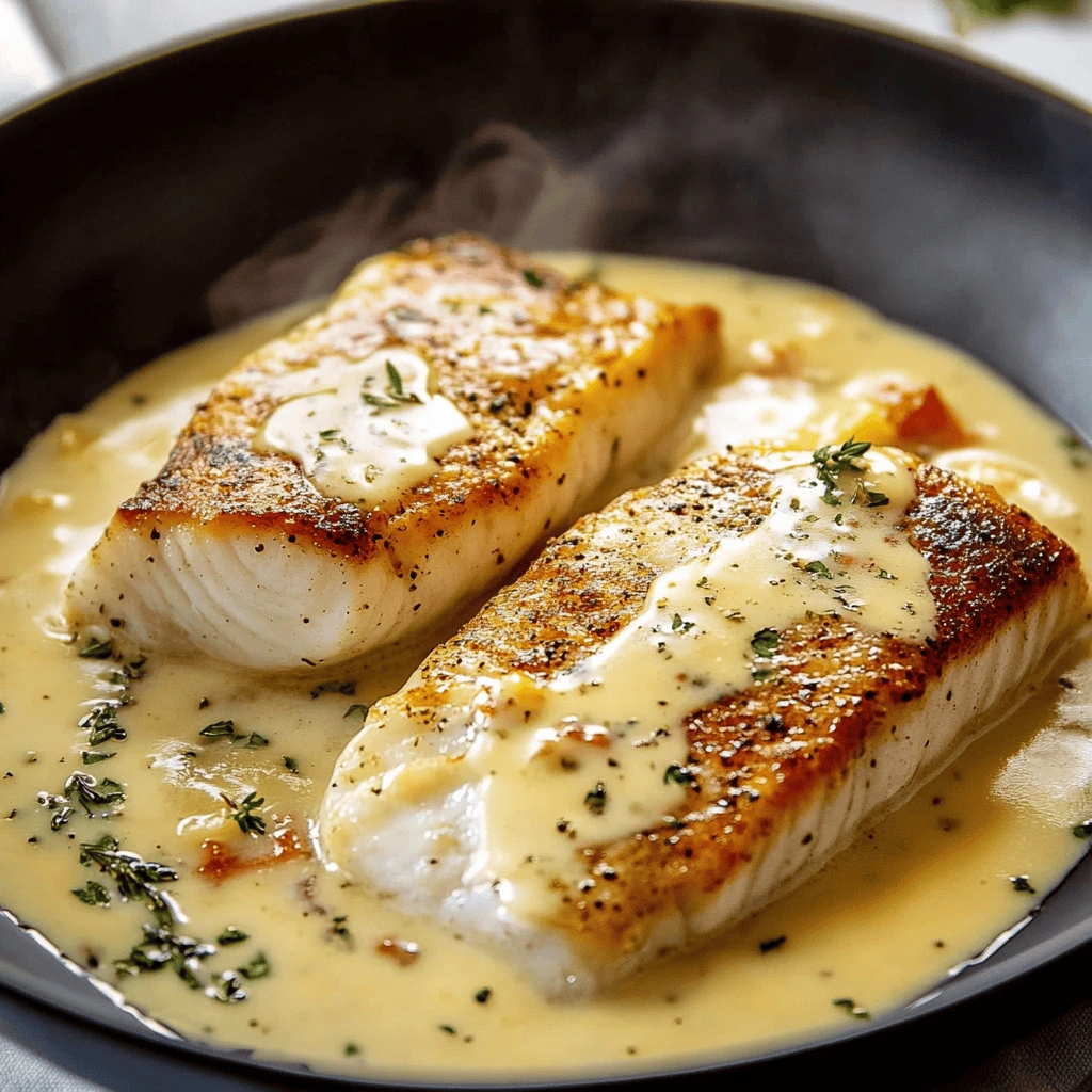 Gently return seared fish fillets back into the skillet, spooning some sauce over them. Let everything cook together for another minute to meld flavors before removing from heat.