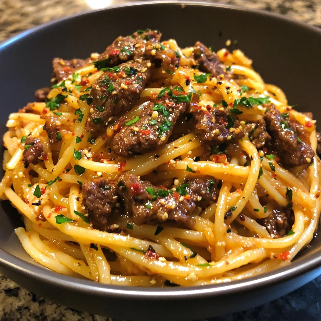 To make your Delicious Garlic Beef Pasta truly stand out, consider using fresh herbs instead of dried ones. Fresh basil or parsley added at the end of cooking brightens up flavors and adds a vibrant color to your dish. Simply chop them finely and sprinkle them on top before serving.