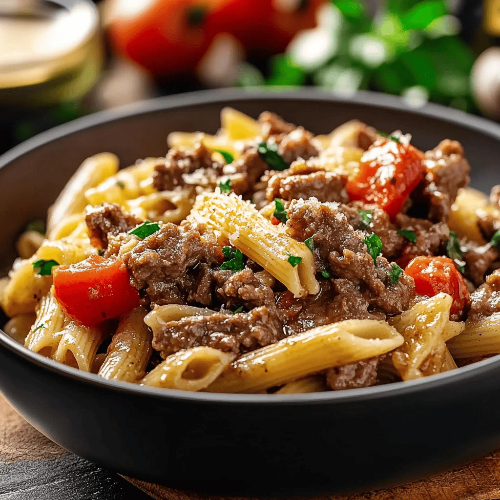 Don’t forget about cheese! A generous sprinkle of freshly grated Parmesan just before serving elevates your pasta experience significantly. It adds creaminess and richness that balances beautifully with garlic and beef flavors, making each bite incredibly delicious.