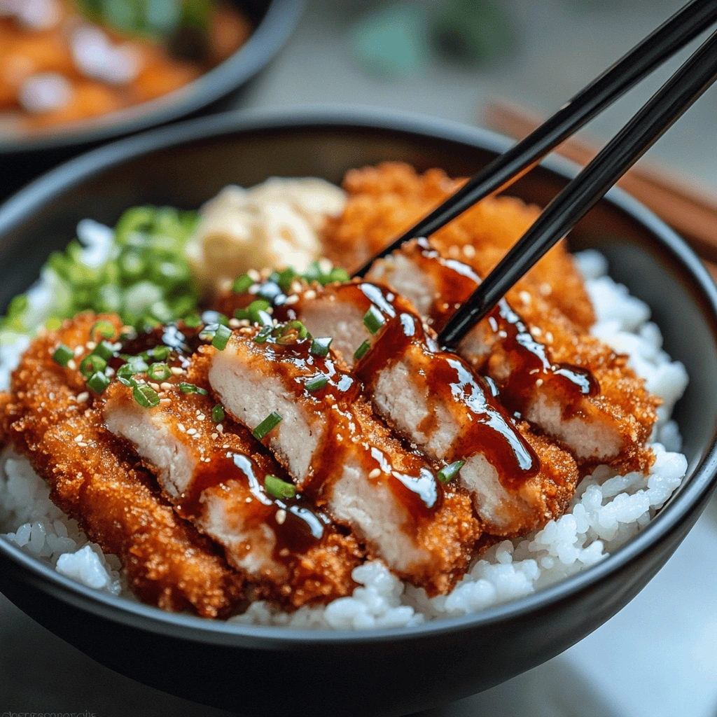 Consider offering dipping sauces on the side for guests who may enjoy customizing their bowls further—options could include extra Tonkatsu sauce or even a tangy ponzu sauce for variety. Lastly, garnish your plate with fresh herbs like cilantro or green onions to elevate both presentation and taste.