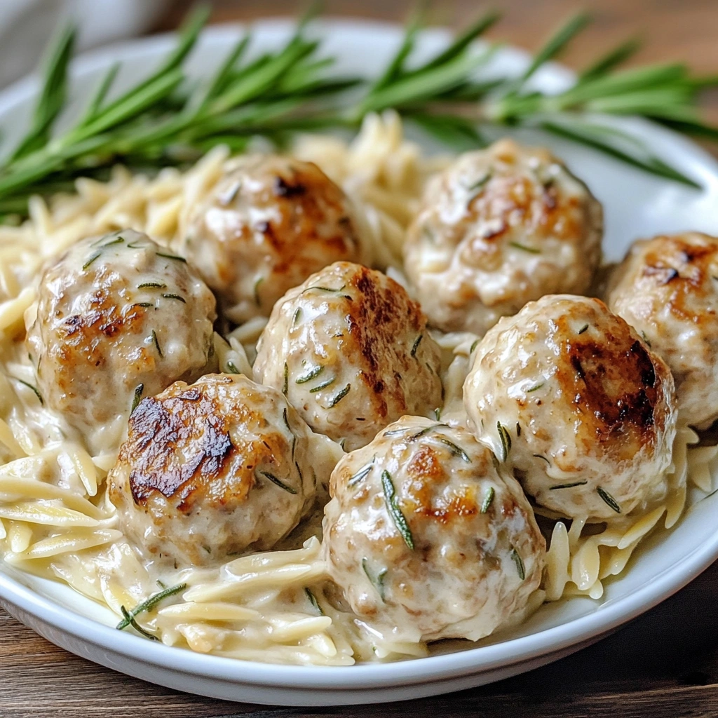 Delicious Lemon Rosemary Chicken Meatballs with Creamy Orzo