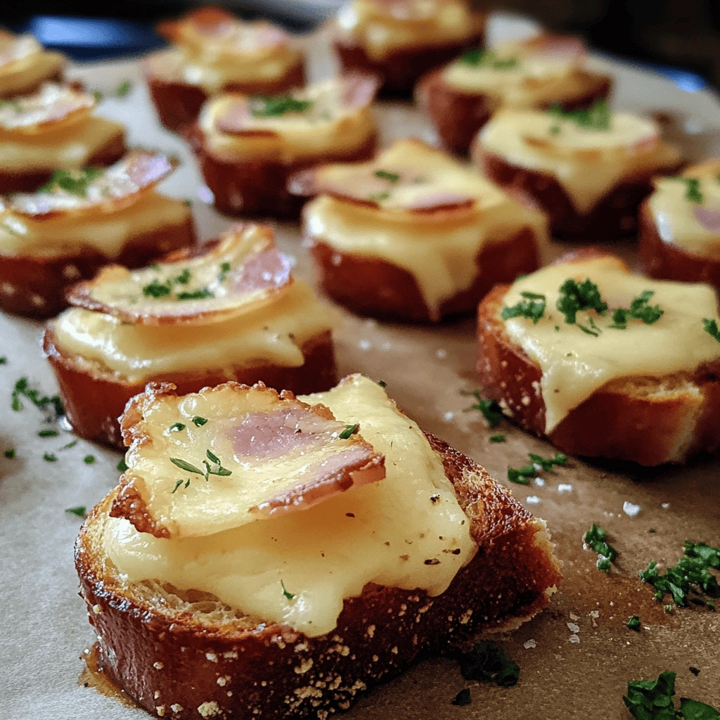 Choose 8 slices of rye bread, cut into quarters to form bite-sized pieces. The robust flavor of rye pairs beautifully with the other ingredients and adds a satisfying crunch when toasted.