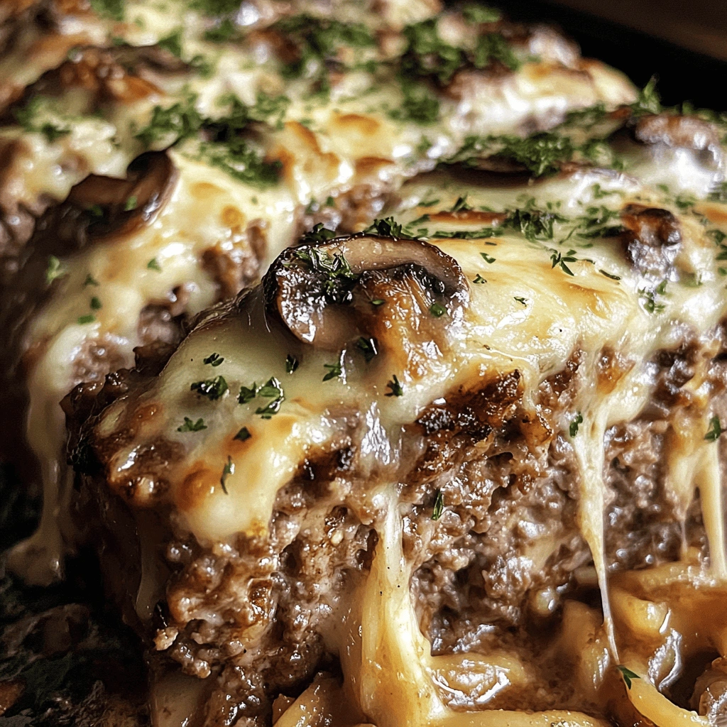 When preparing Mushroom Swiss Cheese Meatloaf, one common mistake is overmixing the ingredients. Mixing too vigorously can lead to a dense loaf rather than a tender, juicy one. Always mix just until combined to maintain the right texture. Another frequent error is undercooking the meatloaf. Use a meat thermometer to check for an internal temperature of 160°F for ground beef. Skipping the resting time after baking is also a mistake; letting the meatloaf rest allows juices to redistribute, ensuring every slice remains moist and flavorful.