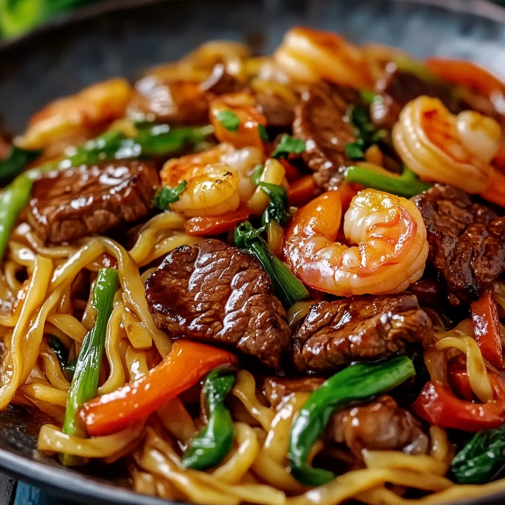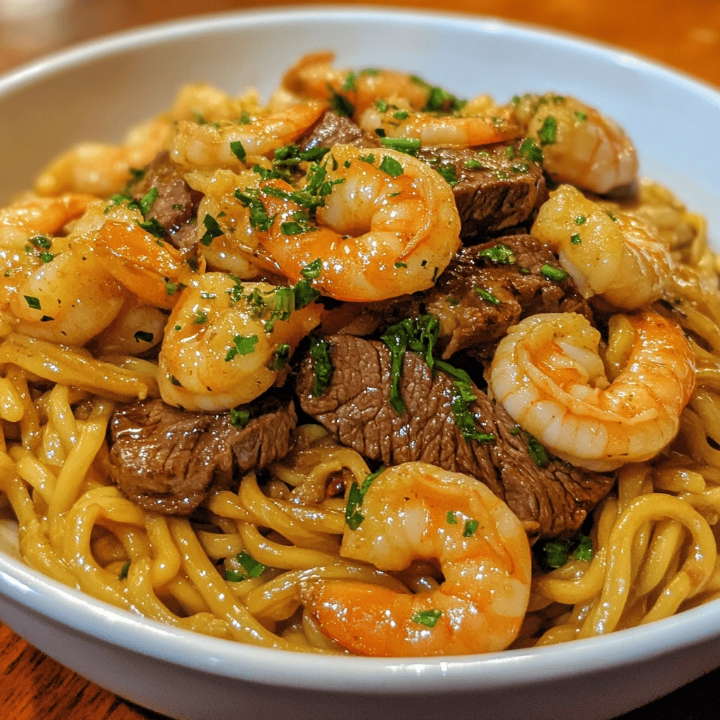 Consider pairing your Steak & Shrimp Stir-Fried Noodles with a light side salad dressed with sesame vinaigrette. This adds crunchiness while balancing the richness of the stir-fry. You can also include seasonal vegetables for an extra nutritious boost that complements your meal beautifully.