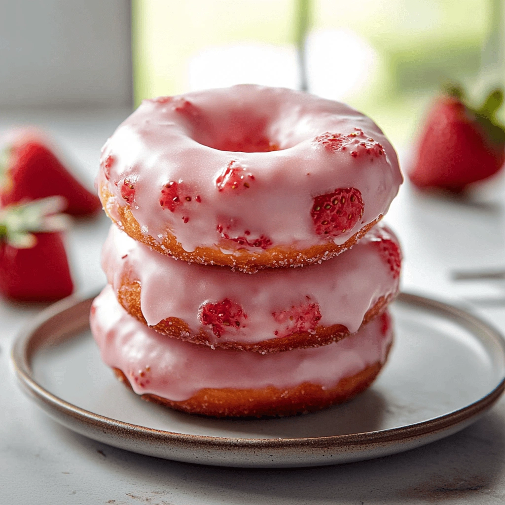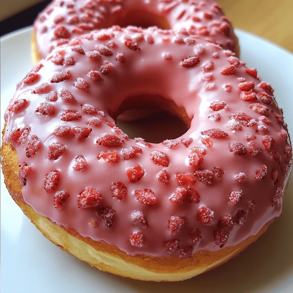 Try pairing your Strawberry Cake Donuts with whipped cream or fresh fruit on top for an appealing presentation. This adds visual flair and enhances flavor with creamy sweetness that balances well with strawberries.