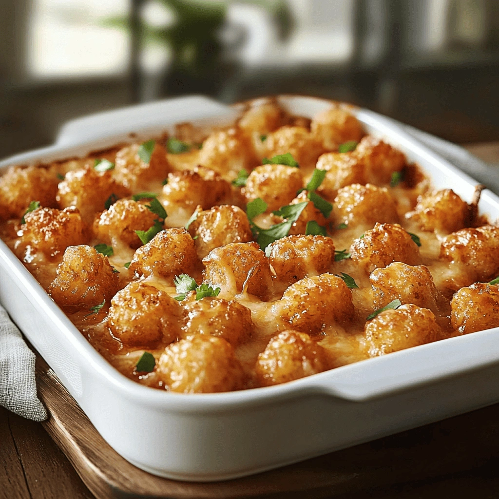 Turkey Tater Tot Hot Dish is a comforting casserole made with ground turkey, mixed vegetables, and topped with crispy tater tots. This hearty meal combines savory flavors with a satisfying texture, making it popular among families seeking quick weeknight dinners.