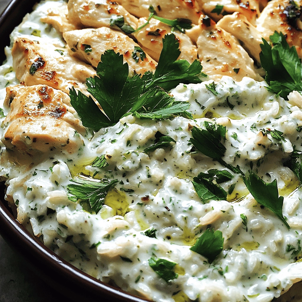 To make your Dump-and-Bake Chicken Tzatziki with Rice Recipe shine, consider marinating the chicken before baking. A simple marinade of yogurt, lemon juice, garlic, and spices can infuse moisture and flavor into the chicken. Ideally, let it marinate for at least an hour or overnight for even better results.