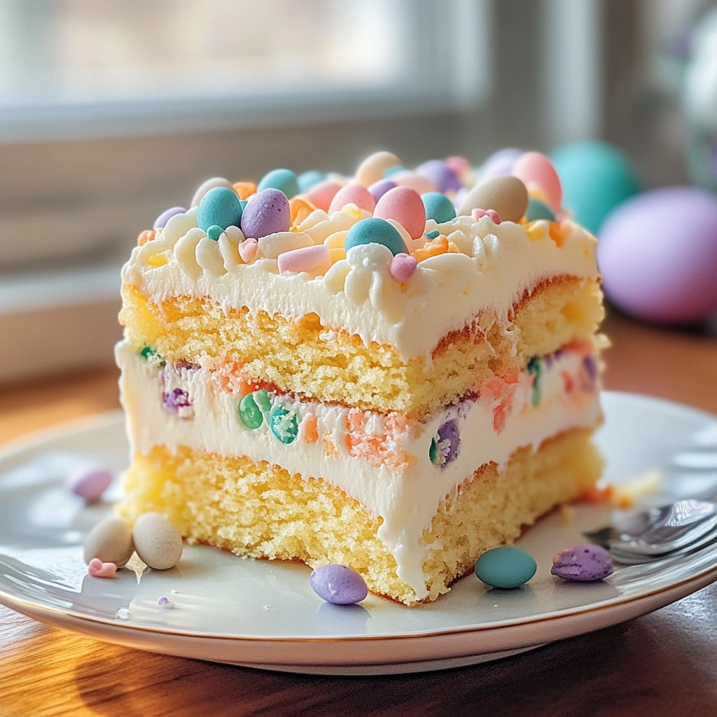 One common mistake when making an Easter Poke Cake is not allowing the cake to cool completely before poking holes. If you poke holes in a warm cake, the liquid can seep out rather than being absorbed, leaving your cake dry. Always wait until the cake reaches room temperature for the best results.
