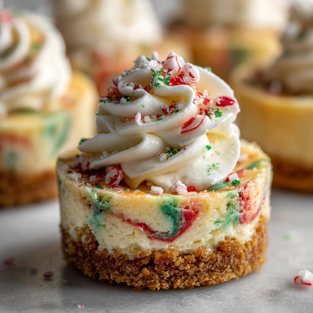 These festive mini cheesecakes are creamy, smooth, and unbelievably quick to make — no oven required. With a buttery cookie crust and a light, velvety cheesecake filling, they’re the perfect Christmas party dessert when you need something delicious, cute, and hassle-free. They chill fast, assemble easily, and look beautifully festive with colorful toppings.