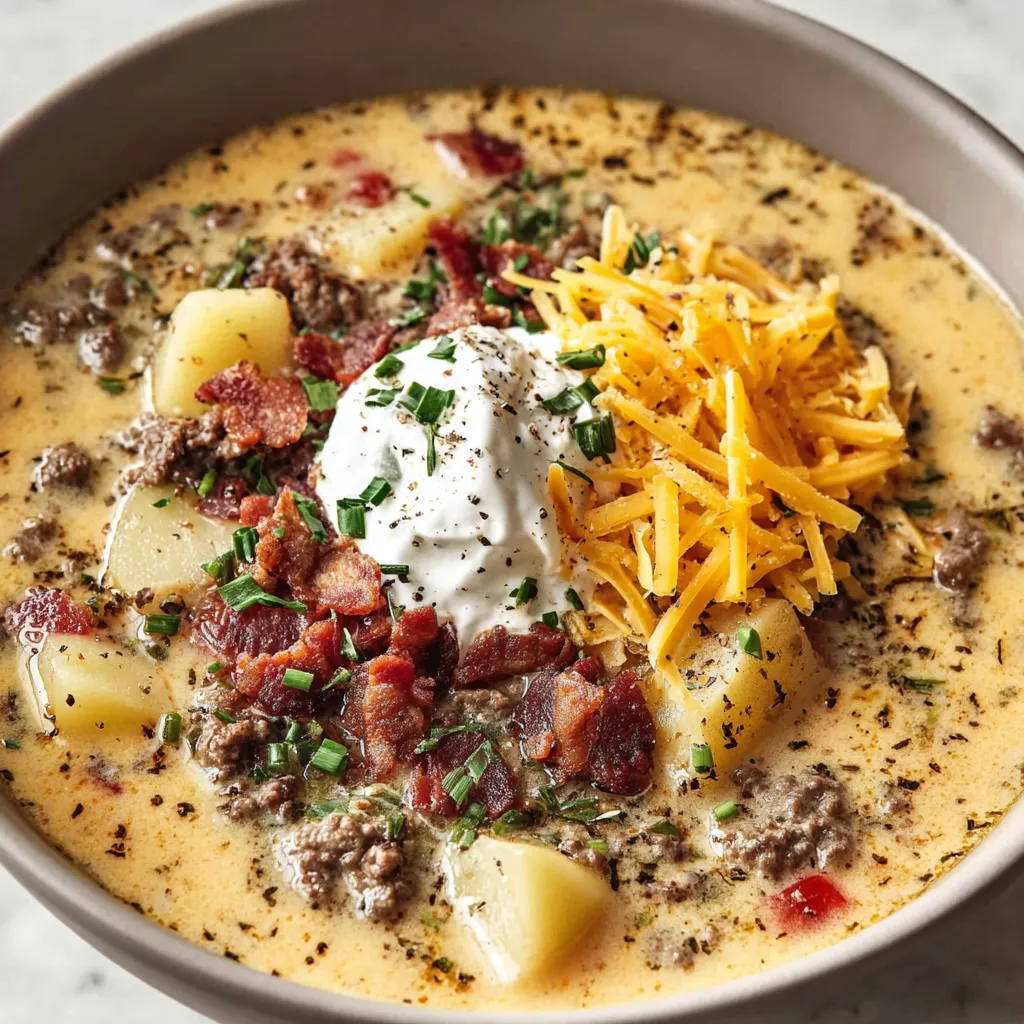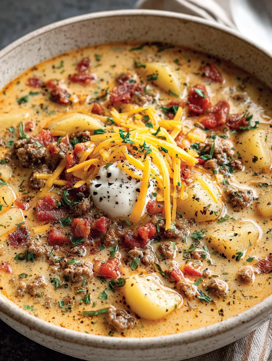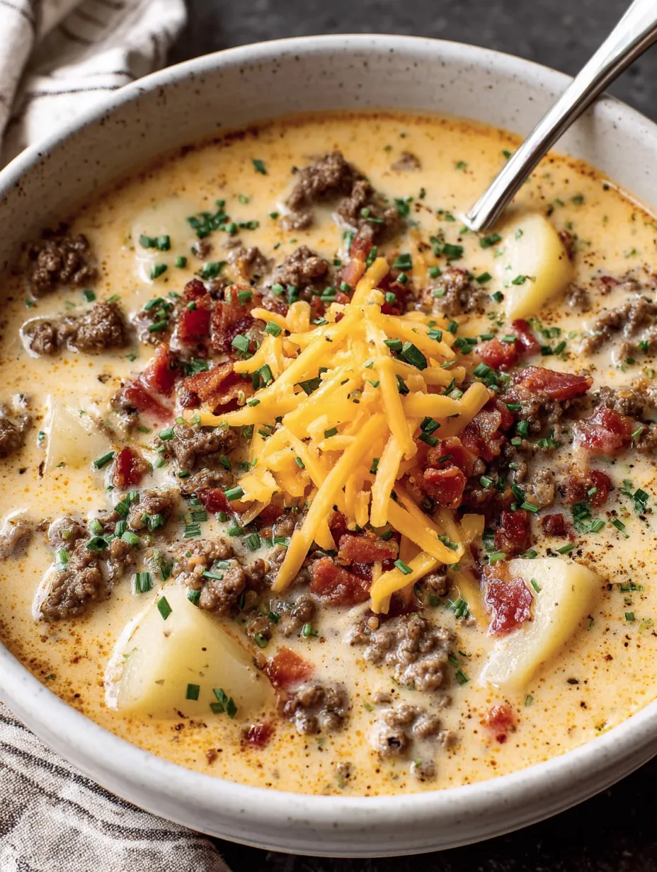 All the flavor of a juicy cheeseburger—without the bun! This creamy, hearty Cheeseburger Soup combines seasoned ground beef, tender potatoes, and melted cheese in a rich, velvety broth. It’s the kind of comforting bowl that warms you from the inside out, perfect for chilly evenings or easy weeknight dinners.