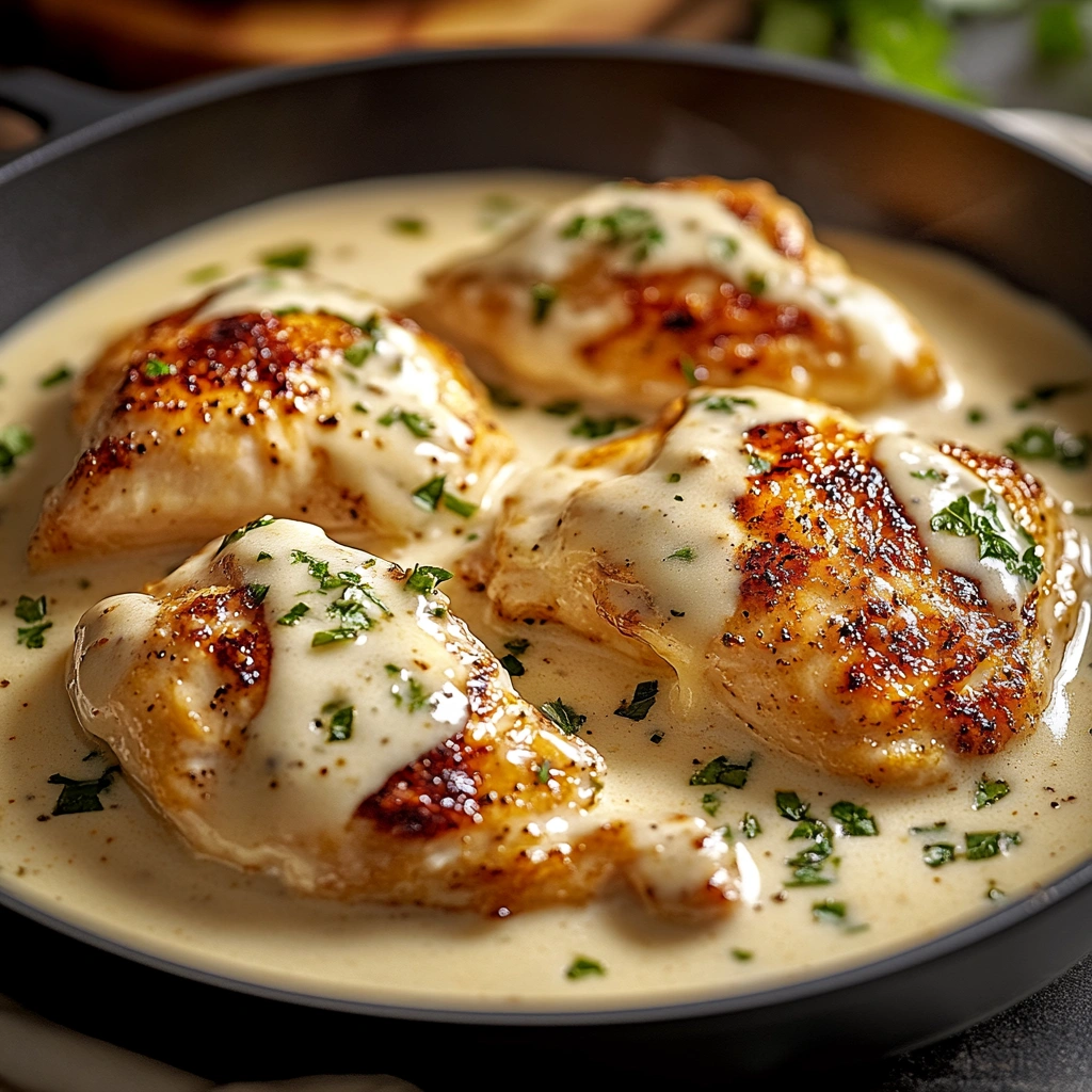CREAMY ASIAGO CHICKEN is a delicious dish featuring tender chicken cooked in a rich Asiago cheese sauce combined with cream and seasonings. It’s known for its creamy texture and robust flavor profile that pairs wonderfully with pasta or steamed vegetables, making it an ideal weeknight dinner option.