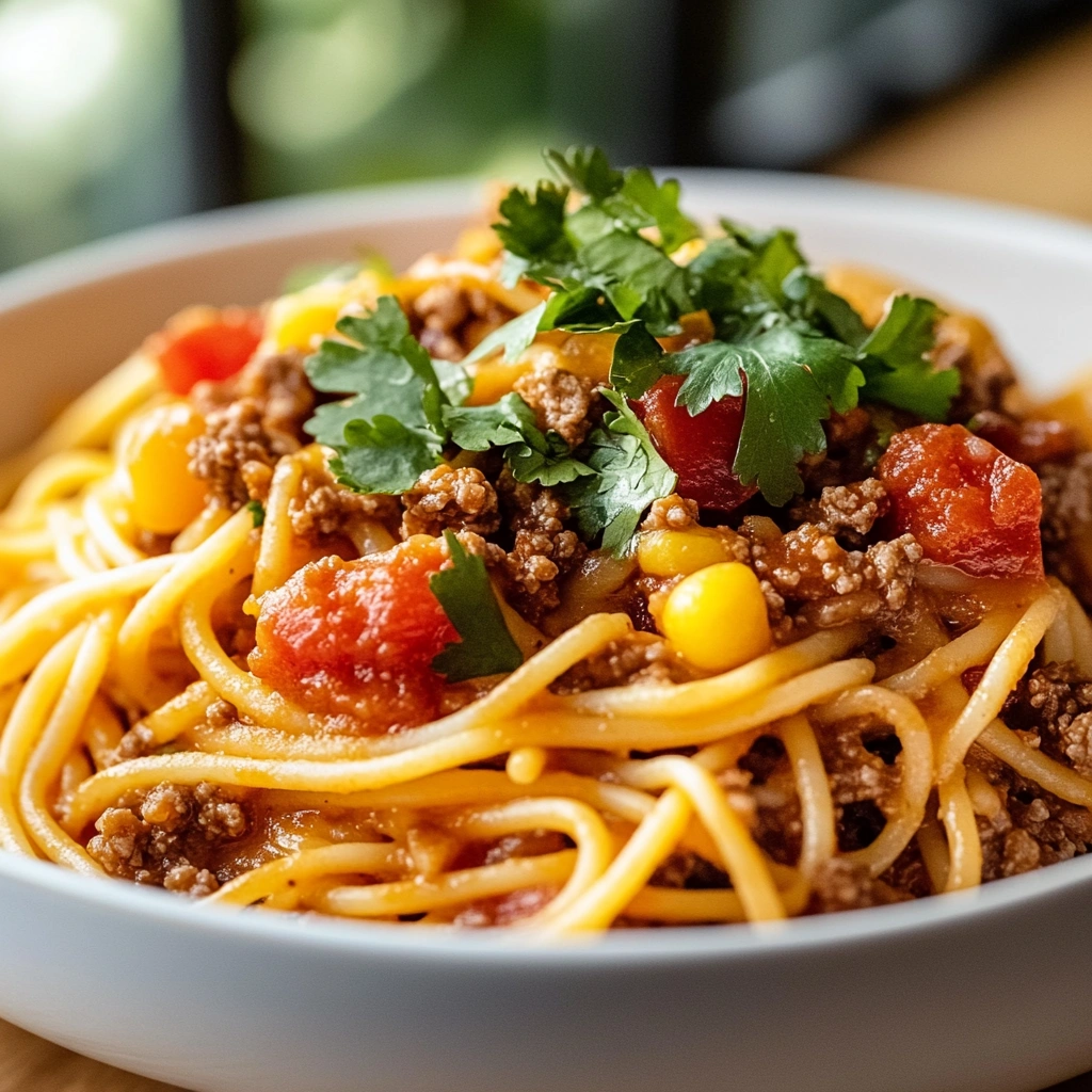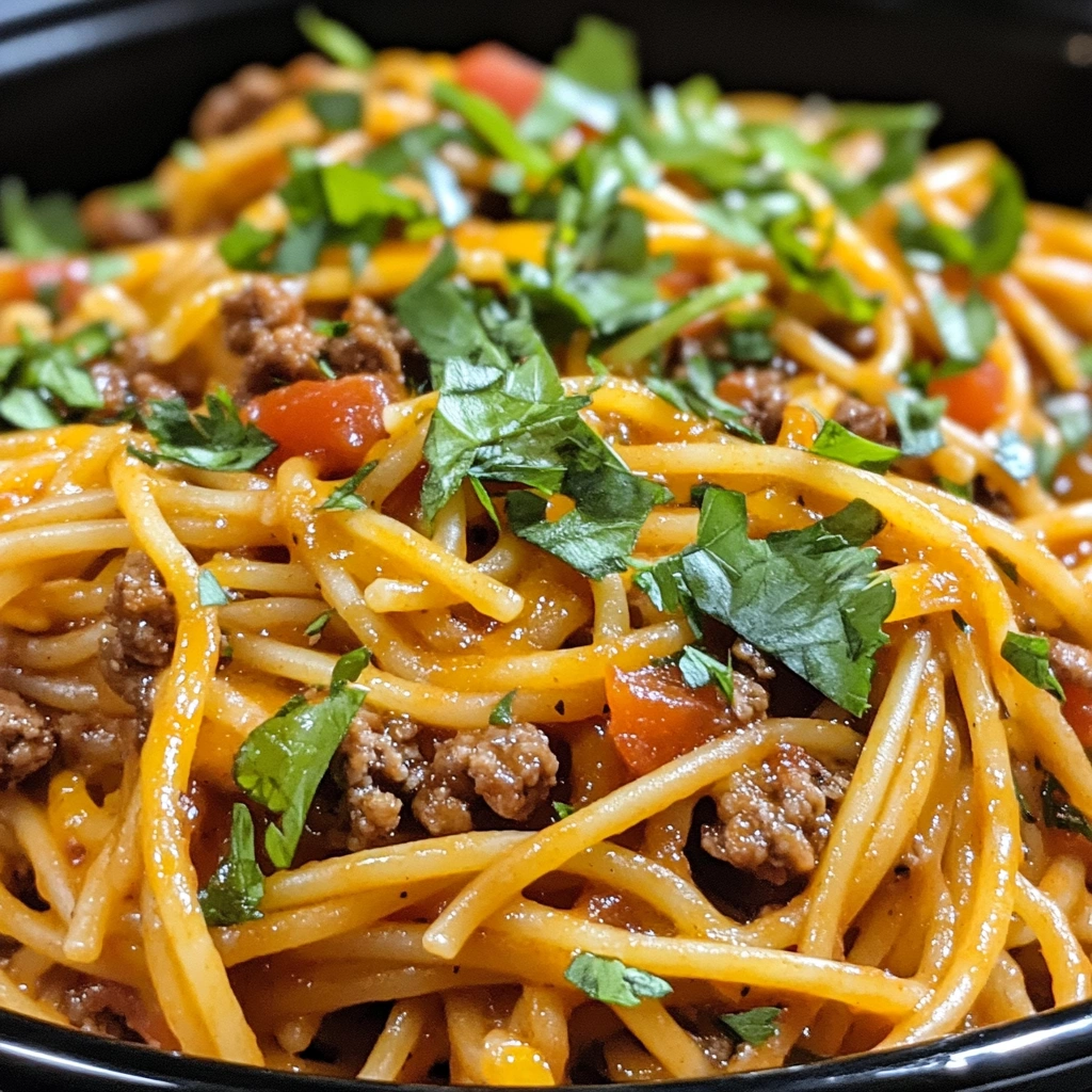 Easy CrockPot Taco Spaghetti Recipe