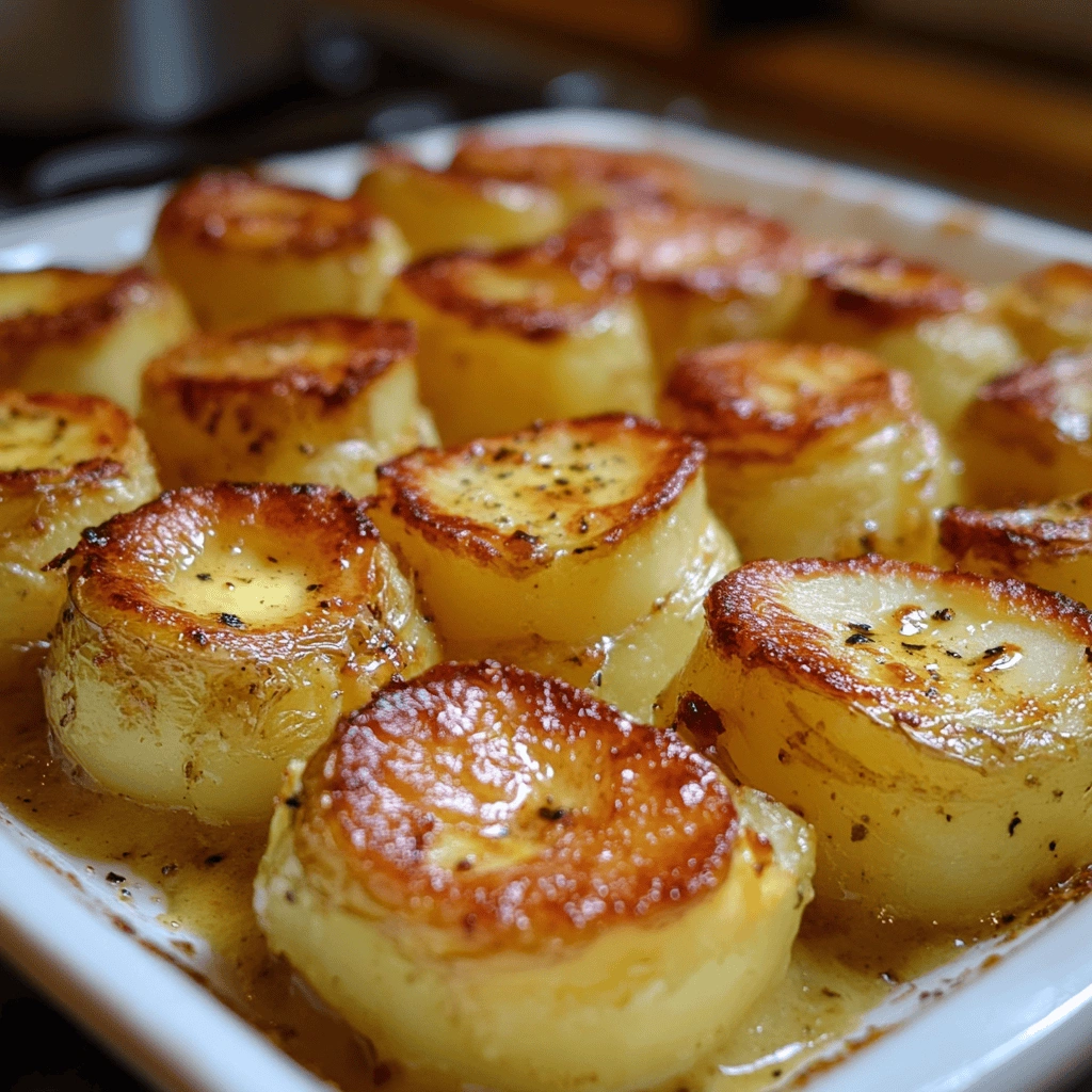 Garlic Butter Fondant Potatoes are a delicious side dish made by slowly cooking potato pieces in garlic-infused butter and broth until tender and flavorful. The cooking method creates a creamy interior with a crispy outer layer that’s both satisfying and rich in taste.