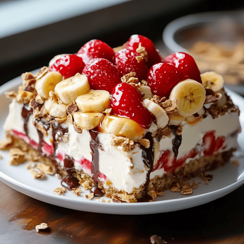 By following these detailed instructions, you’ll create an unforgettable No-Bake Banana Split Cake that’s not only easy but also satisfying! Enjoy every bite!