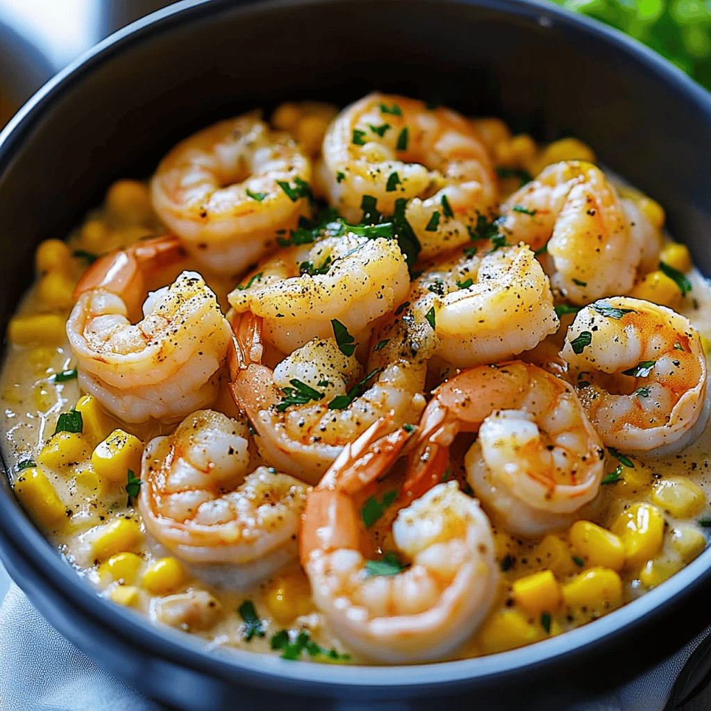 Choosing the right corn is essential for the best Shrimp and Creamed Corn. Prefer sweet corn, either fresh or canned. Fresh corn will provide a crunchy texture that complements the creamy sauce beautifully. If using canned corn, rinse it well to remove excess sodium. When preparing your creamed corn base, consider incorporating aromatics like garlic or onion to build flavor depth. Using heavy cream can create a rich sauce; however, for a lighter option, substitute with half-and-half or even coconut milk for a unique twist. For added texture and flavor, sprinkle some fresh herbs like chives or parsley just before serving.