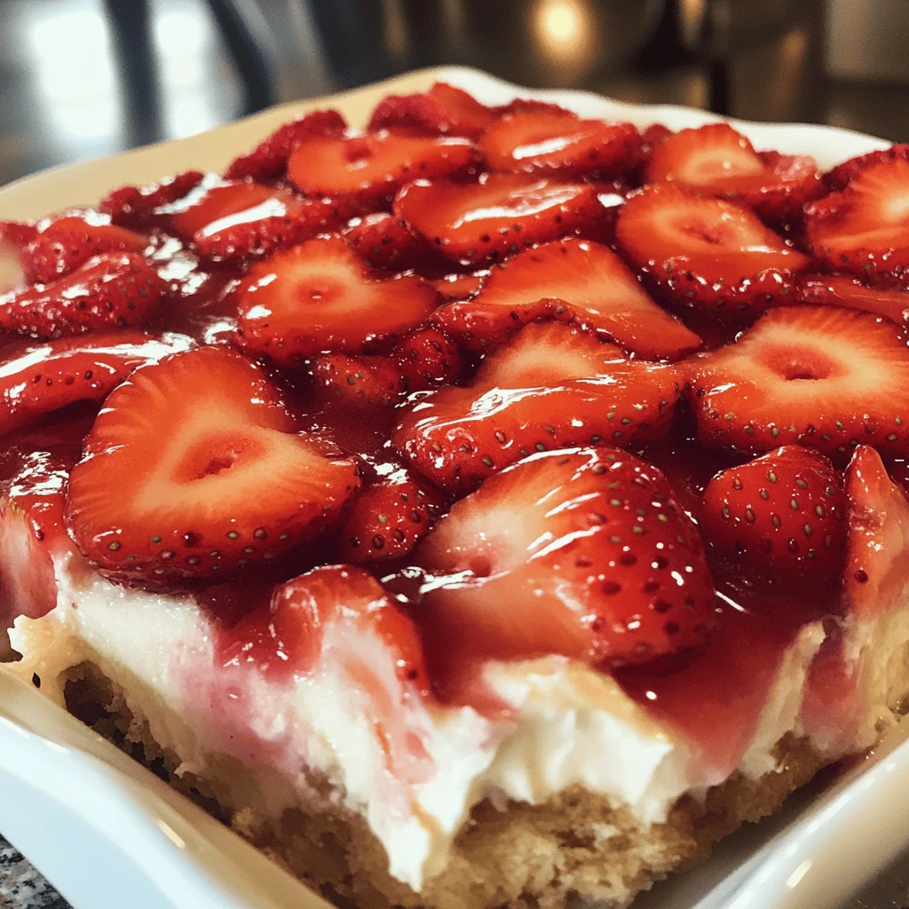 You can also drizzle chocolate sauce over each piece when serving for a decadent touch that pairs beautifully with strawberry flavors. Alternatively, serve with whipped cream or ice cream on the side for an extra creamy experience.