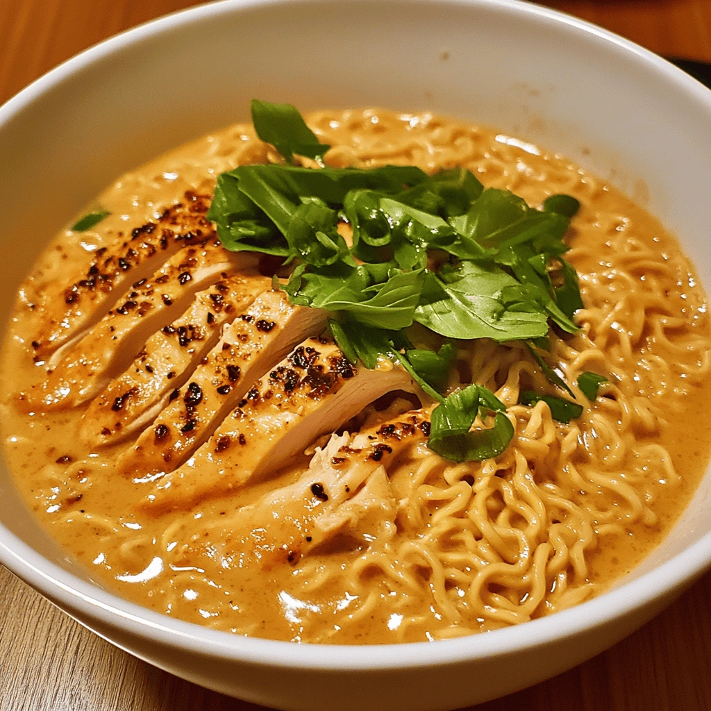 Fiery Chicken Ramen with Creamy Garlic Sauce