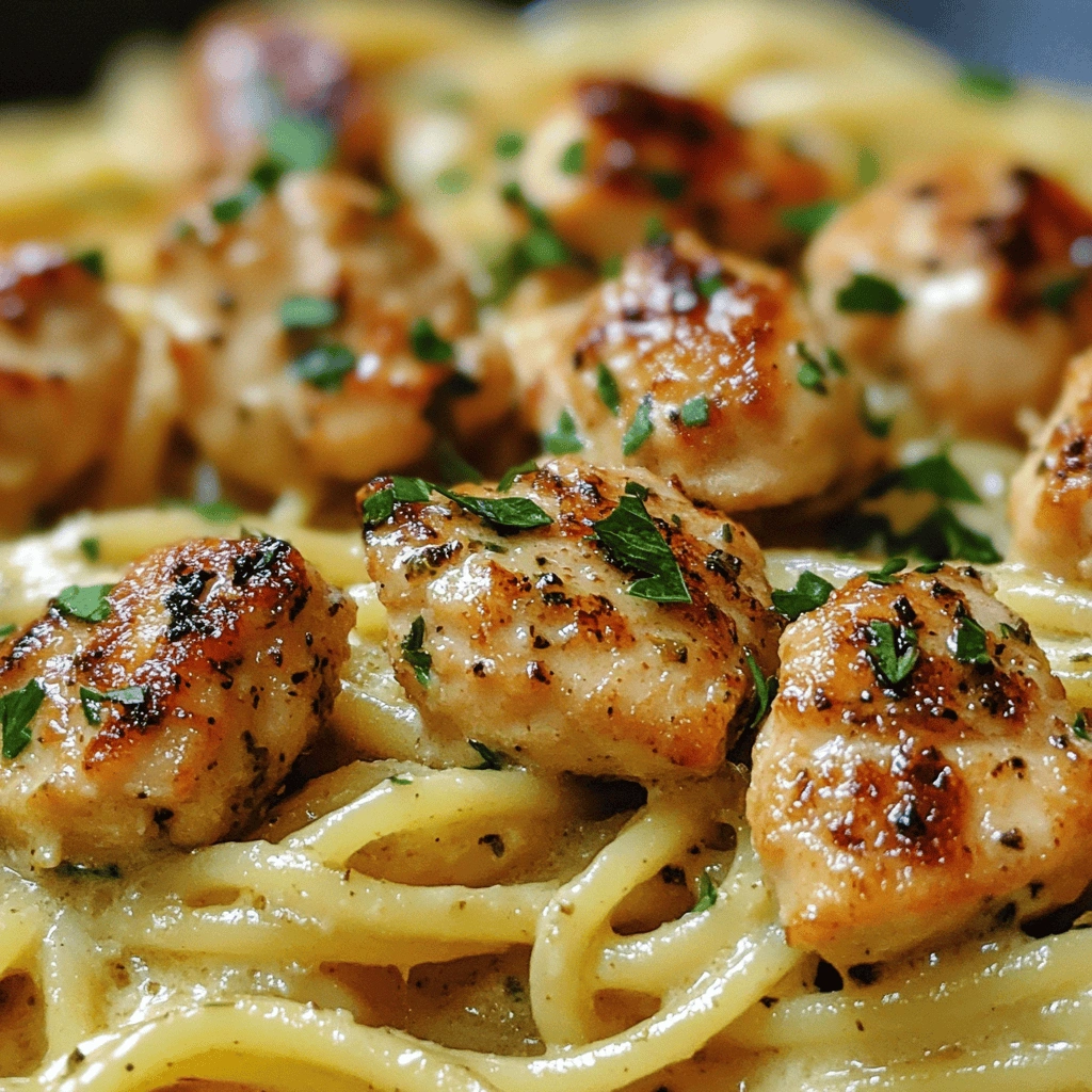 Choose your favorite type of pasta; fettuccine or penne works wonderfully. Cook it al dente to provide the perfect texture that complements the tender chicken bites and buttery sauce.