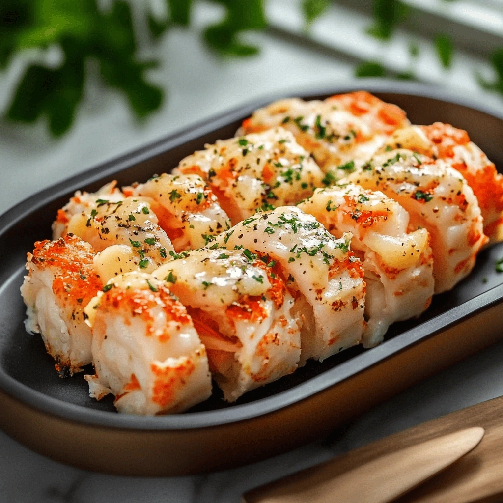 To store leftover Garlic Butter King Crab Rolls effectively, wrap them tightly in plastic wrap or aluminum foil after they’ve cooled down slightly. This prevents them from drying out in the fridge. They can be stored in an airtight container for up to two days; however, it’s best enjoyed fresh! To reheat them later, place them in an oven at 350°F (175°C) until warmed through while keeping their crusty exterior intact.