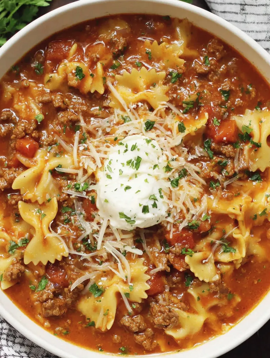 I created this recipe one cold evening when I craved lasagna but didn’t have the time (or energy) to bake one. I tossed everything into a soup pot, added pasta straight to the sauce, and within 30 minutes the kitchen smelled like an Italian restaurant. Now, it’s a family favorite that delivers all the cheesy, meaty goodness with a lot less work.
