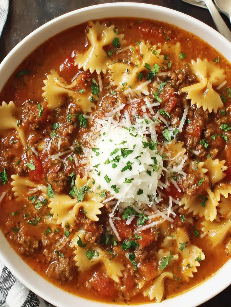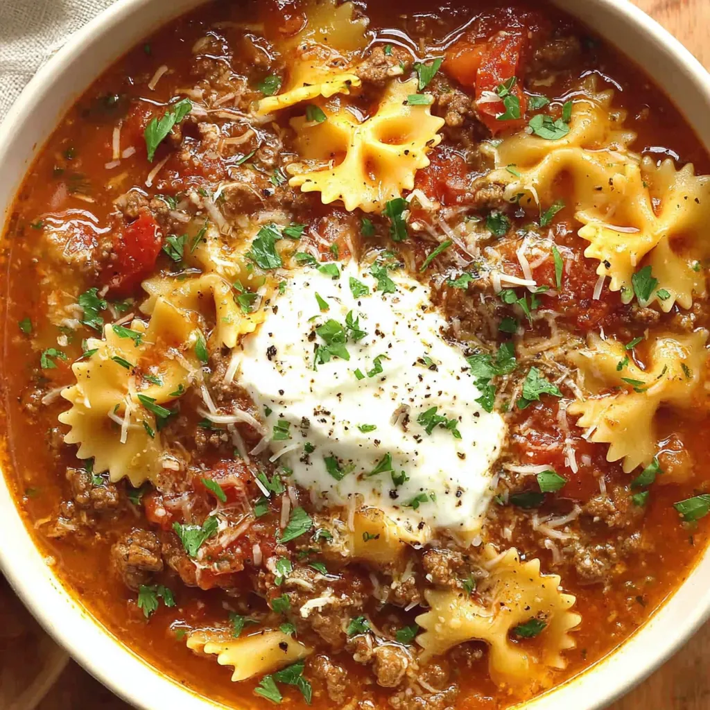 All the comfort of homemade lasagna—without the layers or the oven! This hearty lasagna soup combines a rich tomato-meat sauce, creamy cheeses, and tender bow tie pasta for a weeknight dinner that feels like Sunday comfort food. Everything cooks in one pot, and the flavor only gets better as it sits.