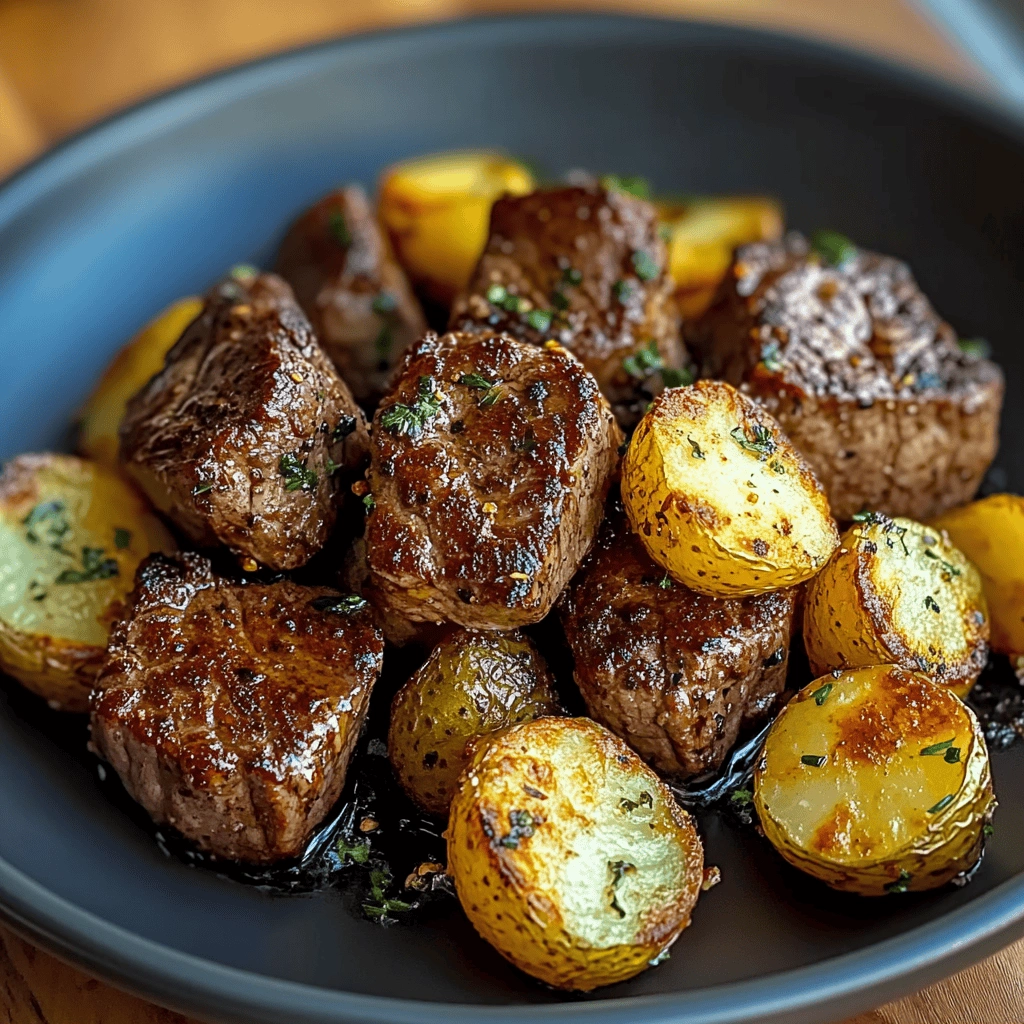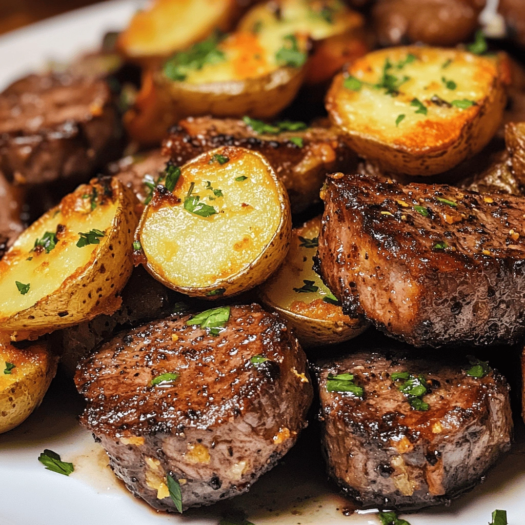 For an extra layer of crunch, consider finishing your dish under the broiler for a couple of minutes after baking. This quick step will enhance that golden-brown color on both the steak bites and potatoes without drying them out.