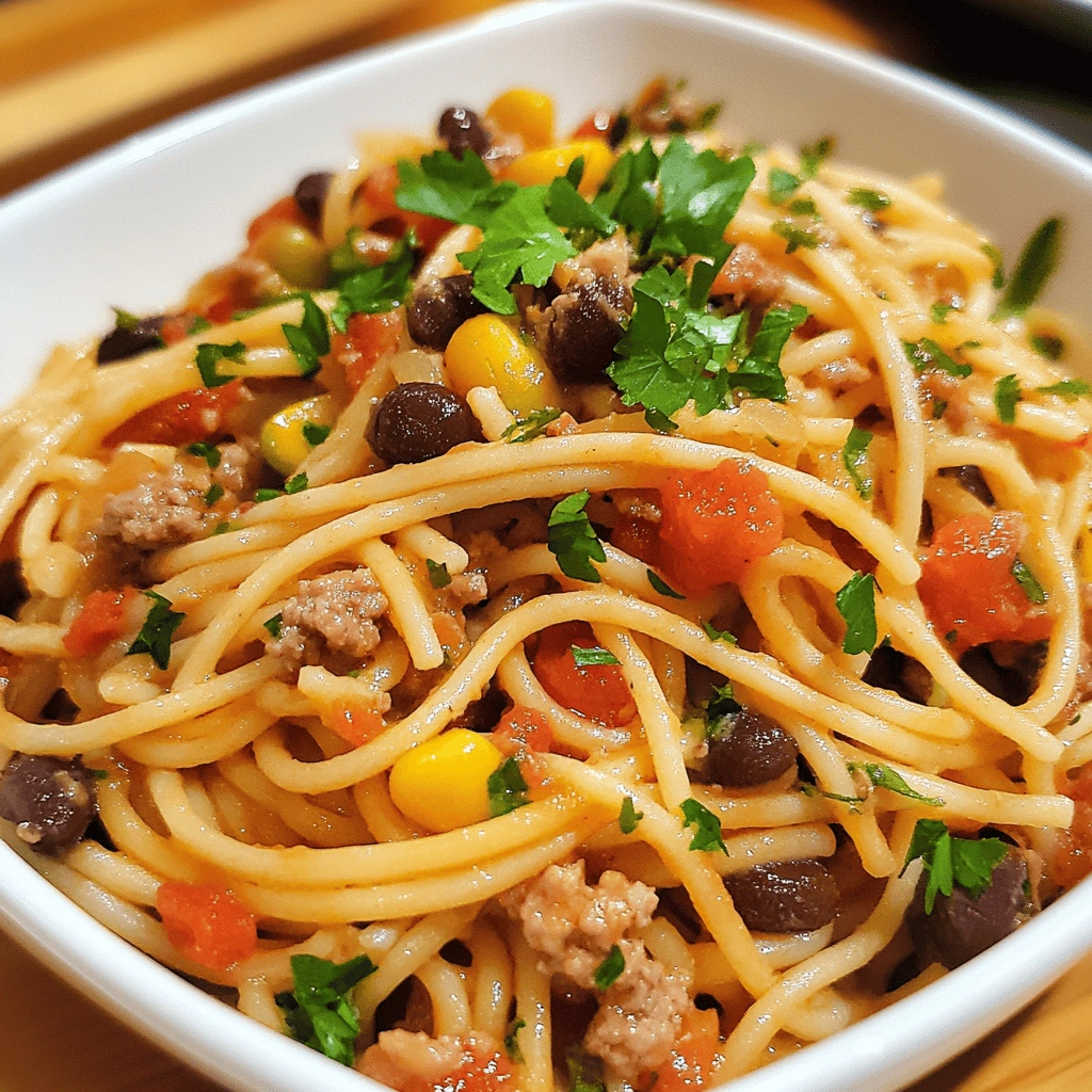 For a unique twist on traditional Mexican spaghetti, try incorporating black beans into the mix. They add protein and fiber while enhancing the overall flavor profile of your dish without adding much prep time.