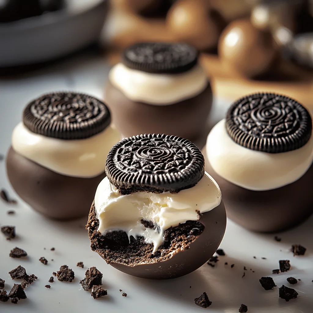 Oreo Cookies and Cream Filled Easter Eggs are delightful candy treats made from melted chocolate shells filled with crushed Oreos mixed with cream cheese or other creamy fillings. They resemble traditional Easter eggs but offer an exciting twist with their delicious cookie-inspired contents.